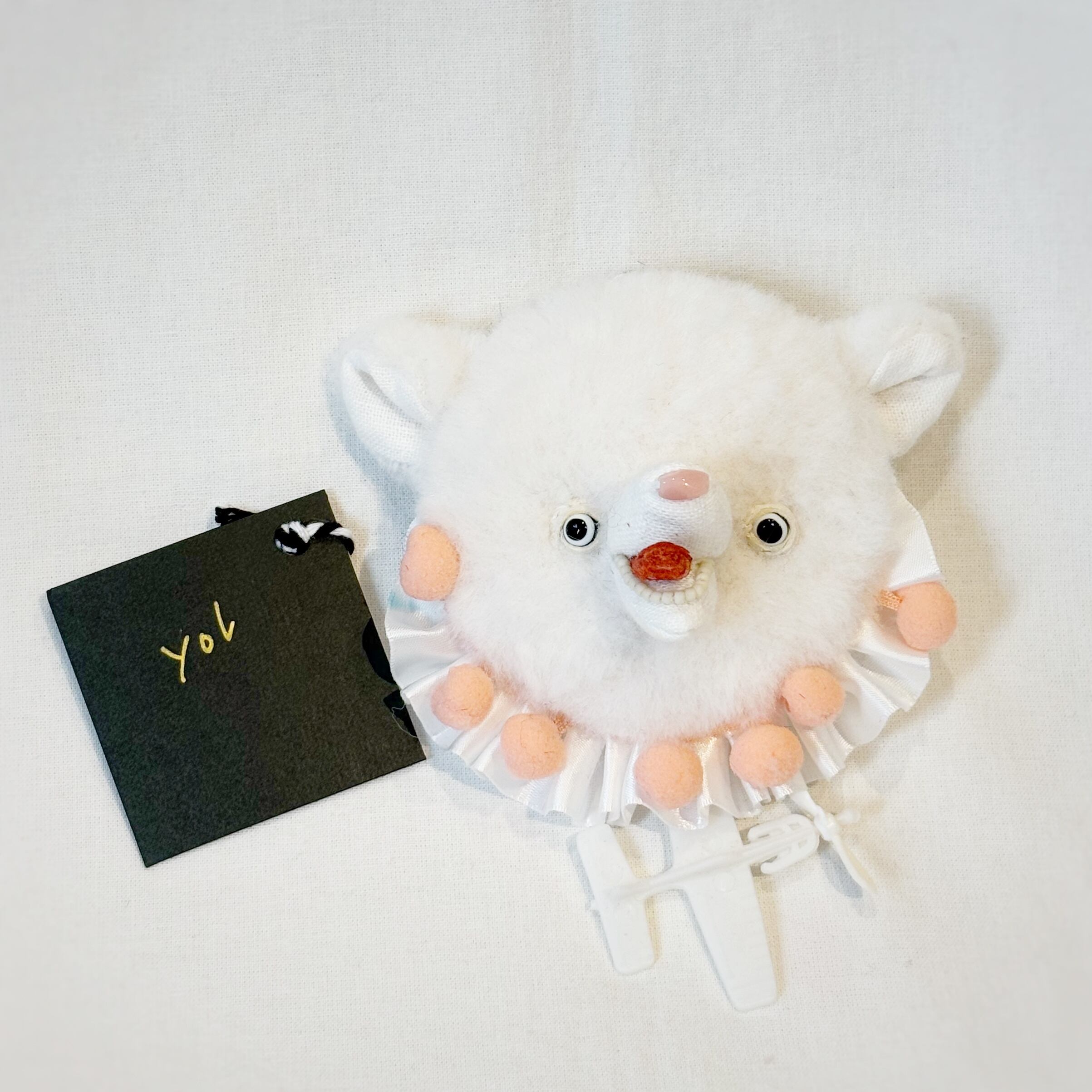 yolさんのブローチには金具のほかにボールチェーンも付いていて、お洋服やカバンにお好きなように付けられます。