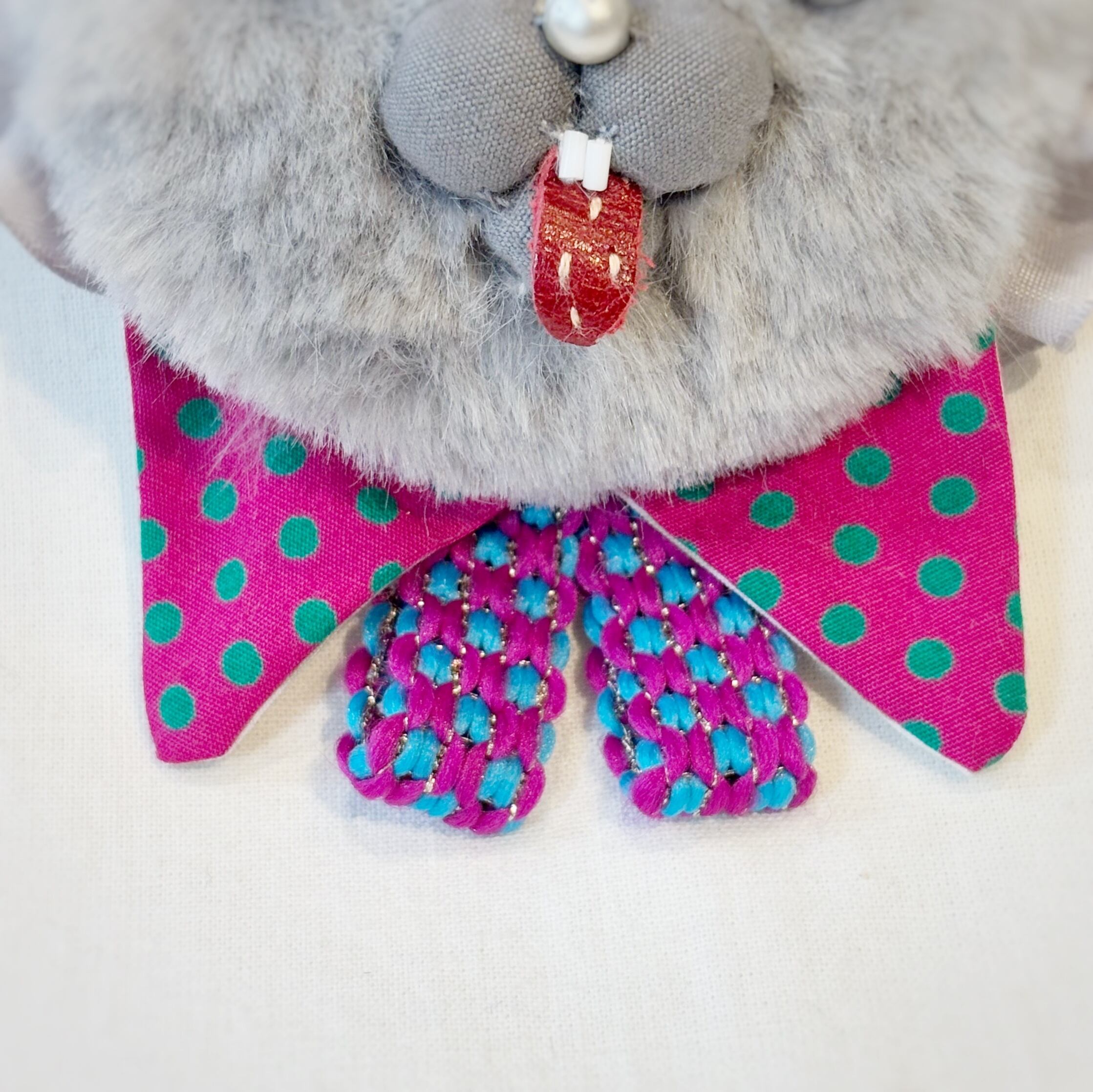 yolさんのブローチには金具のほかにボールチェーンも付いていて、お洋服やカバンにお好きなように付けられます。