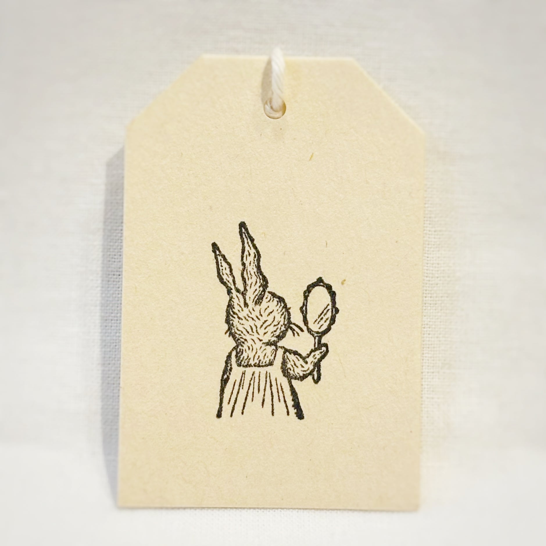 小さな手鏡を覗き込むうさぎの後ろ姿も愛おしいですし、どんな表情をしているんだろうと考える時間も愛おしいです
