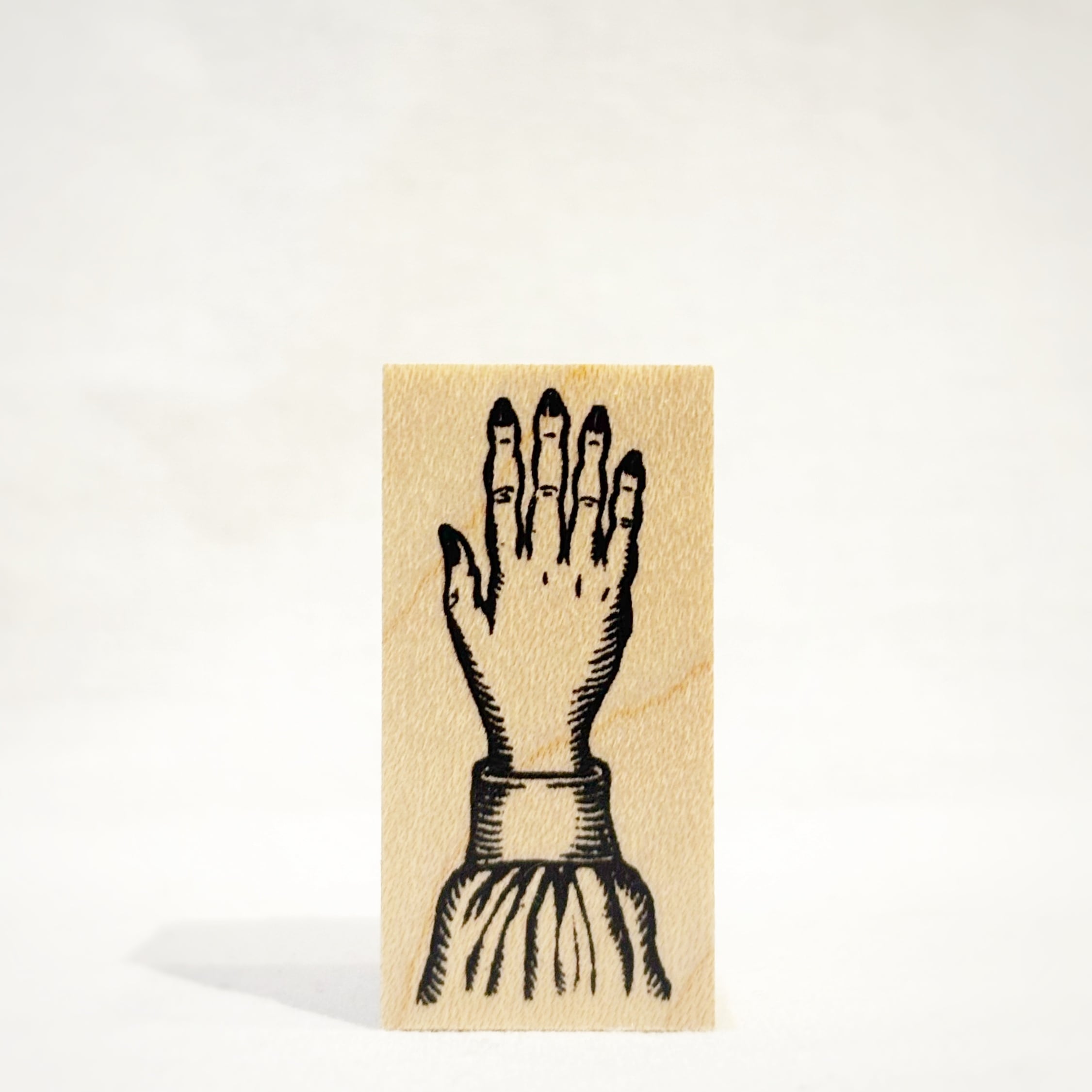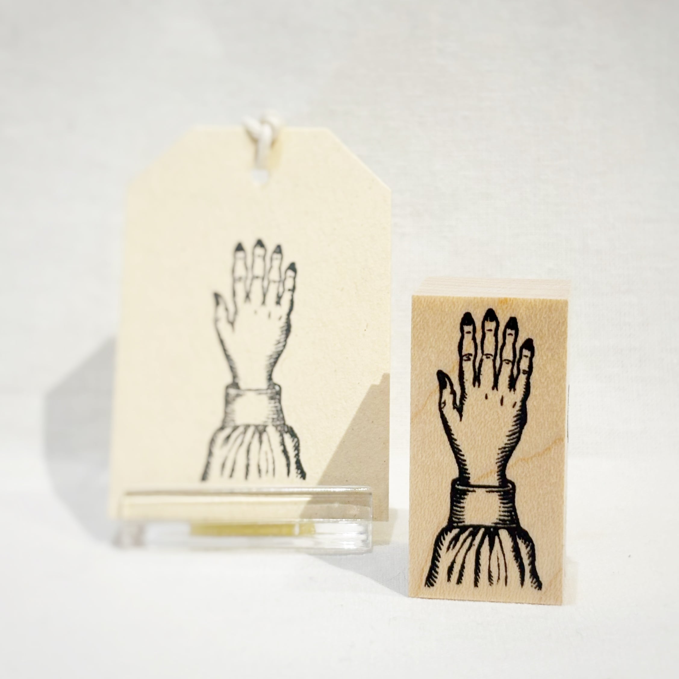 シンプルなデザインながら目を惹く、手とブラウスのスタンプ