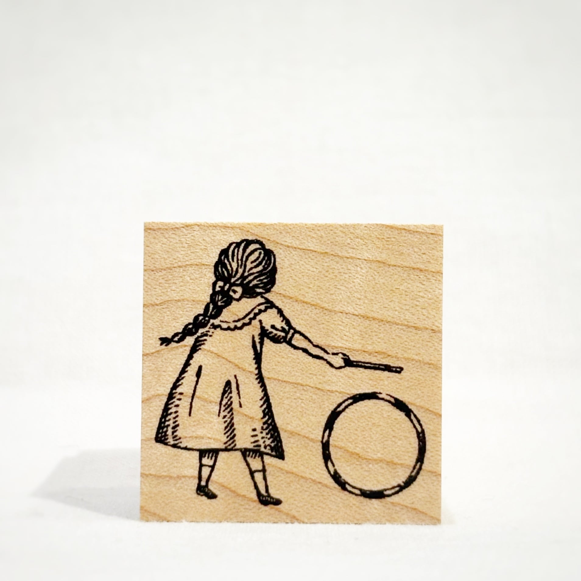 棒で輪っかをころころ転がす昔ながらの遊び、輪回し