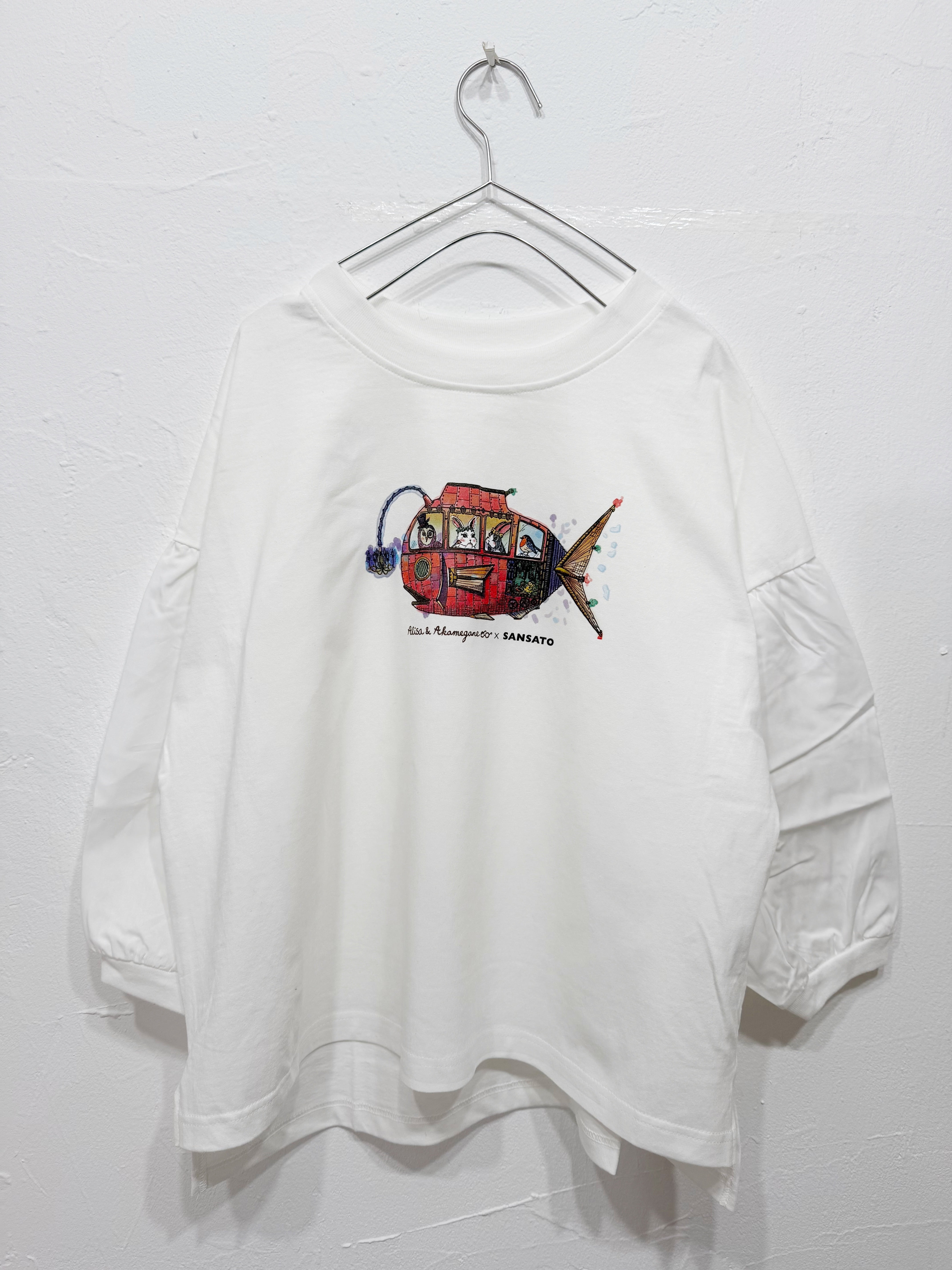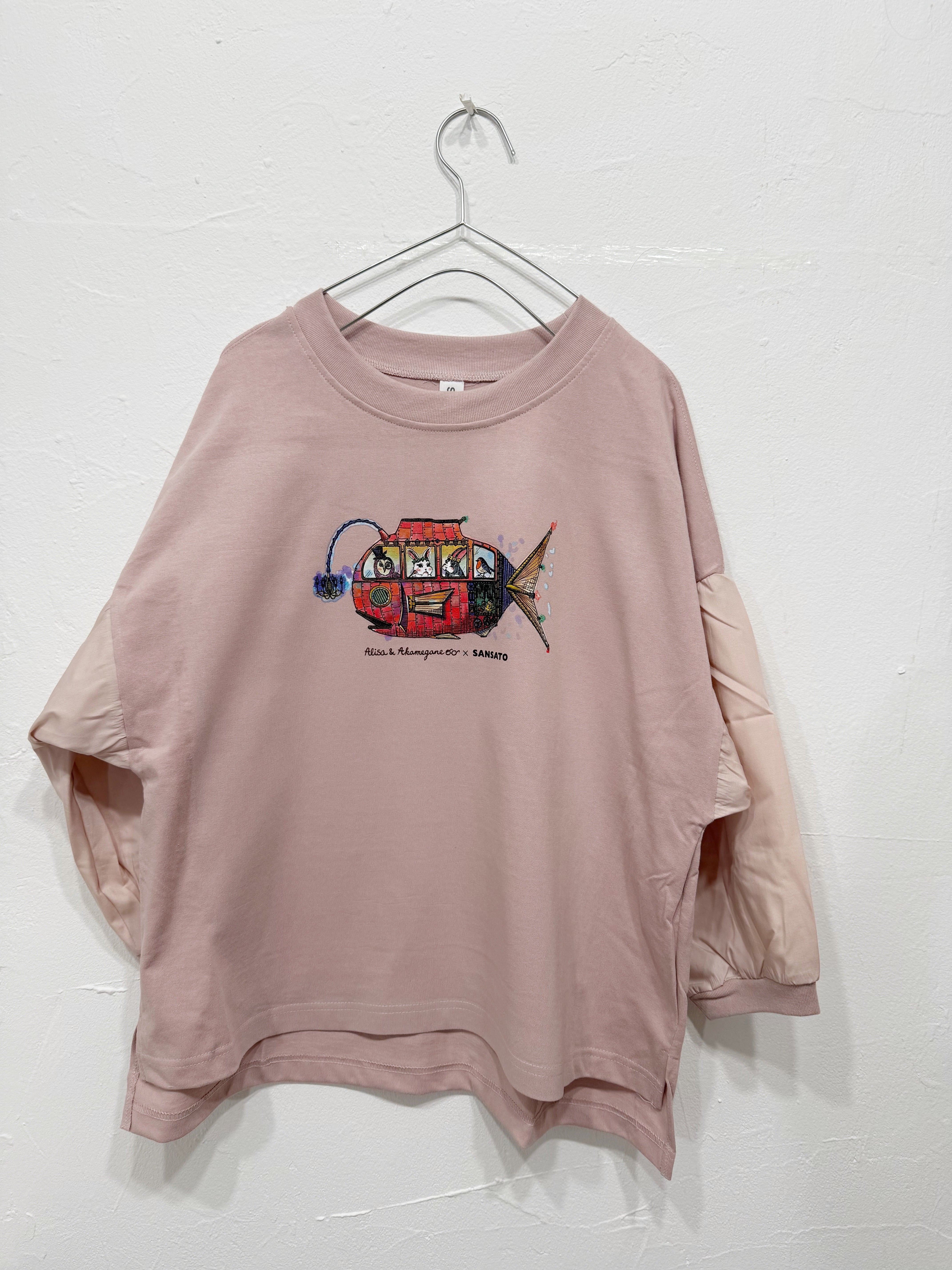 2025年夏新宿西口ハルクにて開催の「新宿にゃあ博」にて販売されたありさ&あかめがねさんと三叉灯によるコラボ袖布帛切り替え七分袖プルオーバー