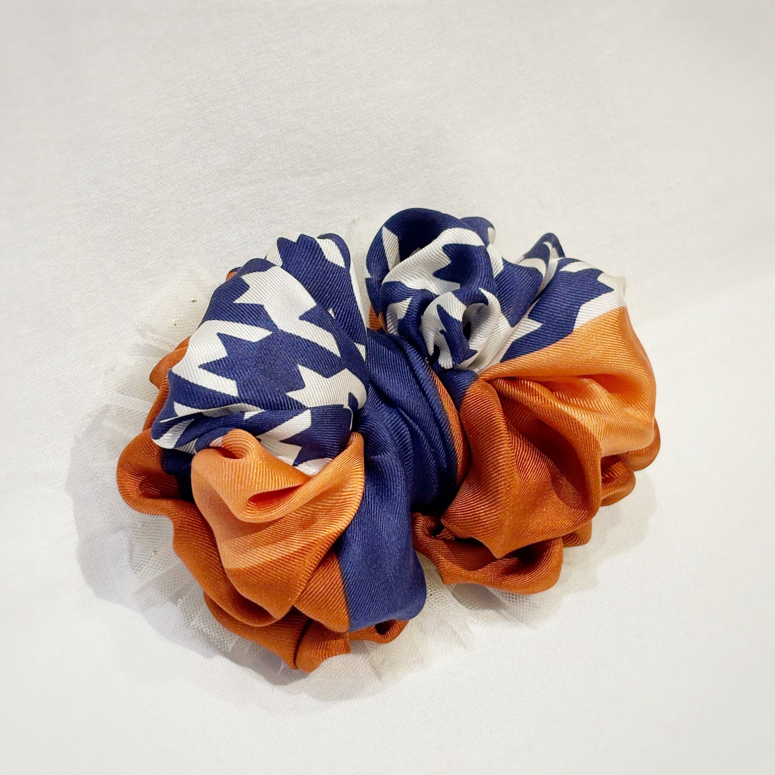 ブラウン基調のリボンと白いレース。特にメインのリボンのネイビー×ホワイトの千鳥格子とブラウン×ネイビーの組み合わせにレトロ大人かわいさを感じるリボン型バレッタです。