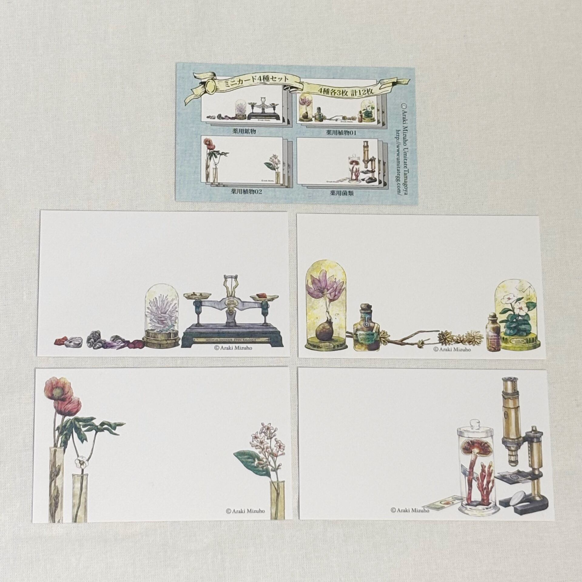 こちらは4種の絵柄が3枚ずつ、合計12枚のミニカードが入っております
