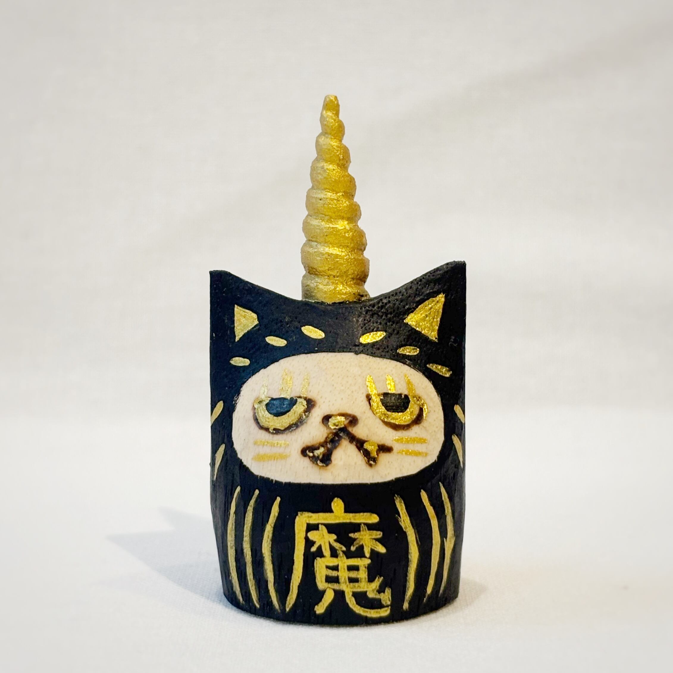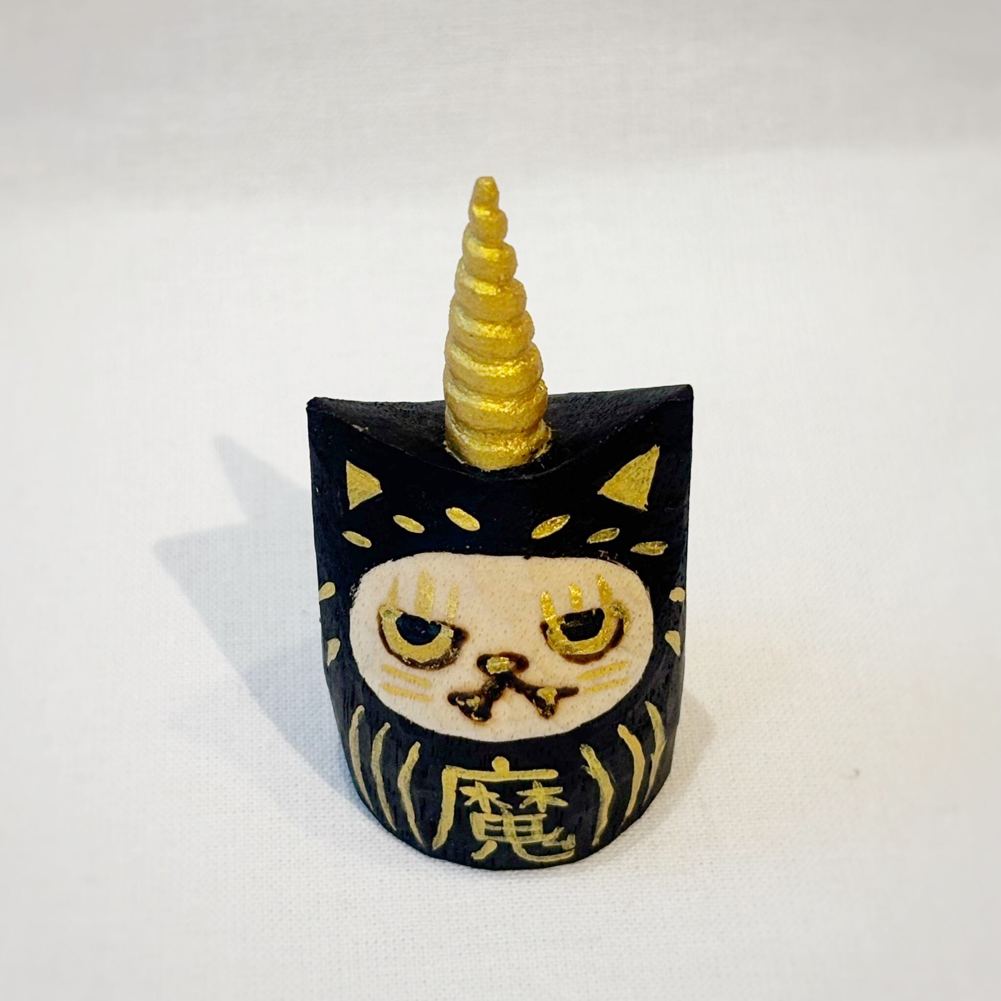 ねこだるま(黒) 一本角 【スタジオナナホシ】