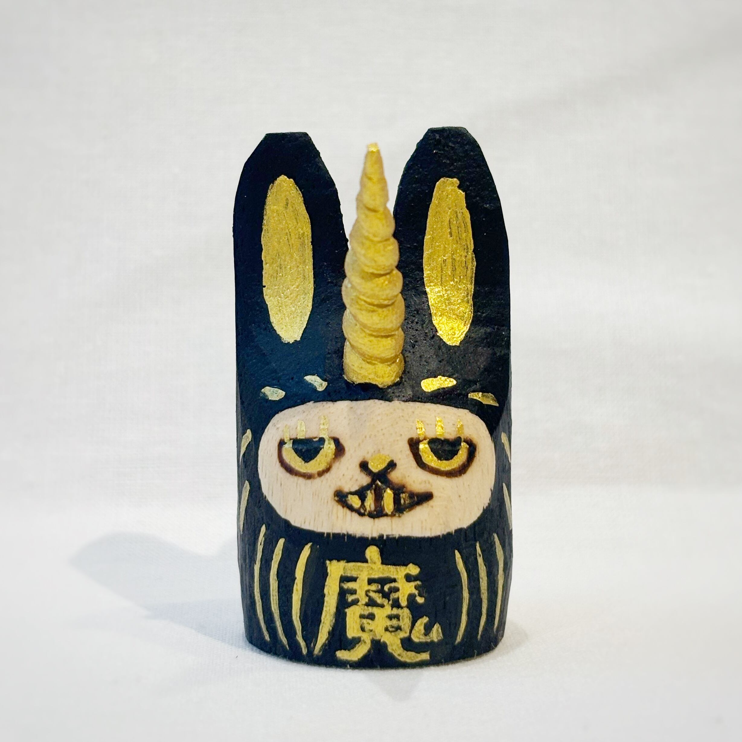 うさぎだるま(黒) 一本角 【スタジオナナホシ】