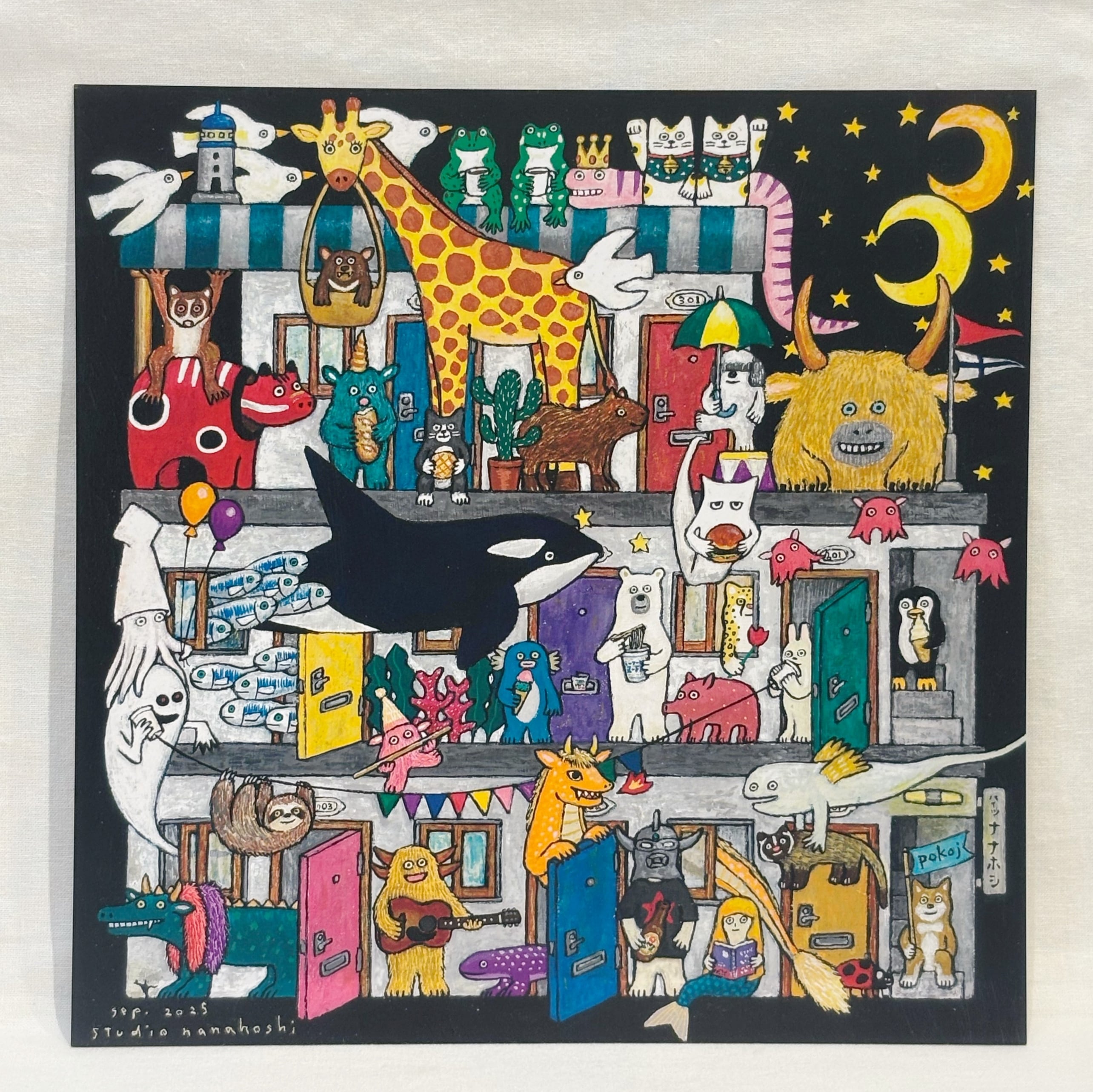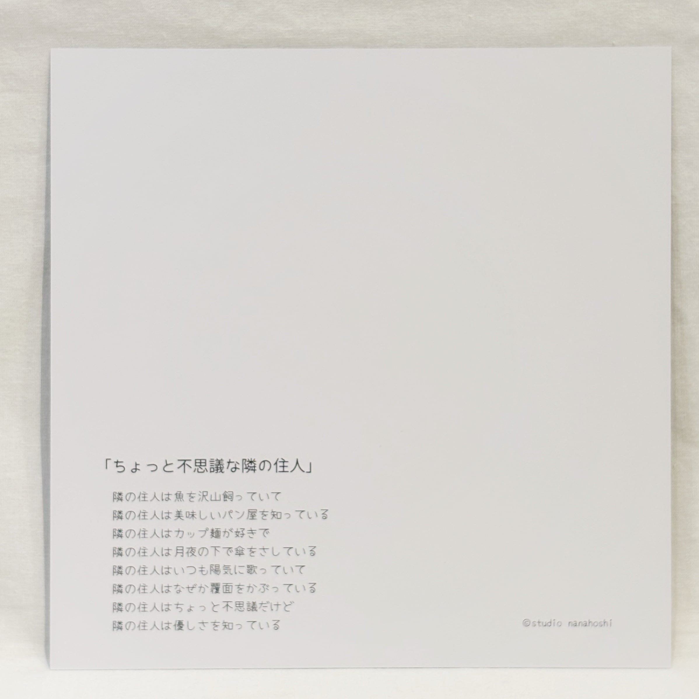 スタジオナナホシさんのイラスト「ちょっと不思議な隣の住人」の大判カード