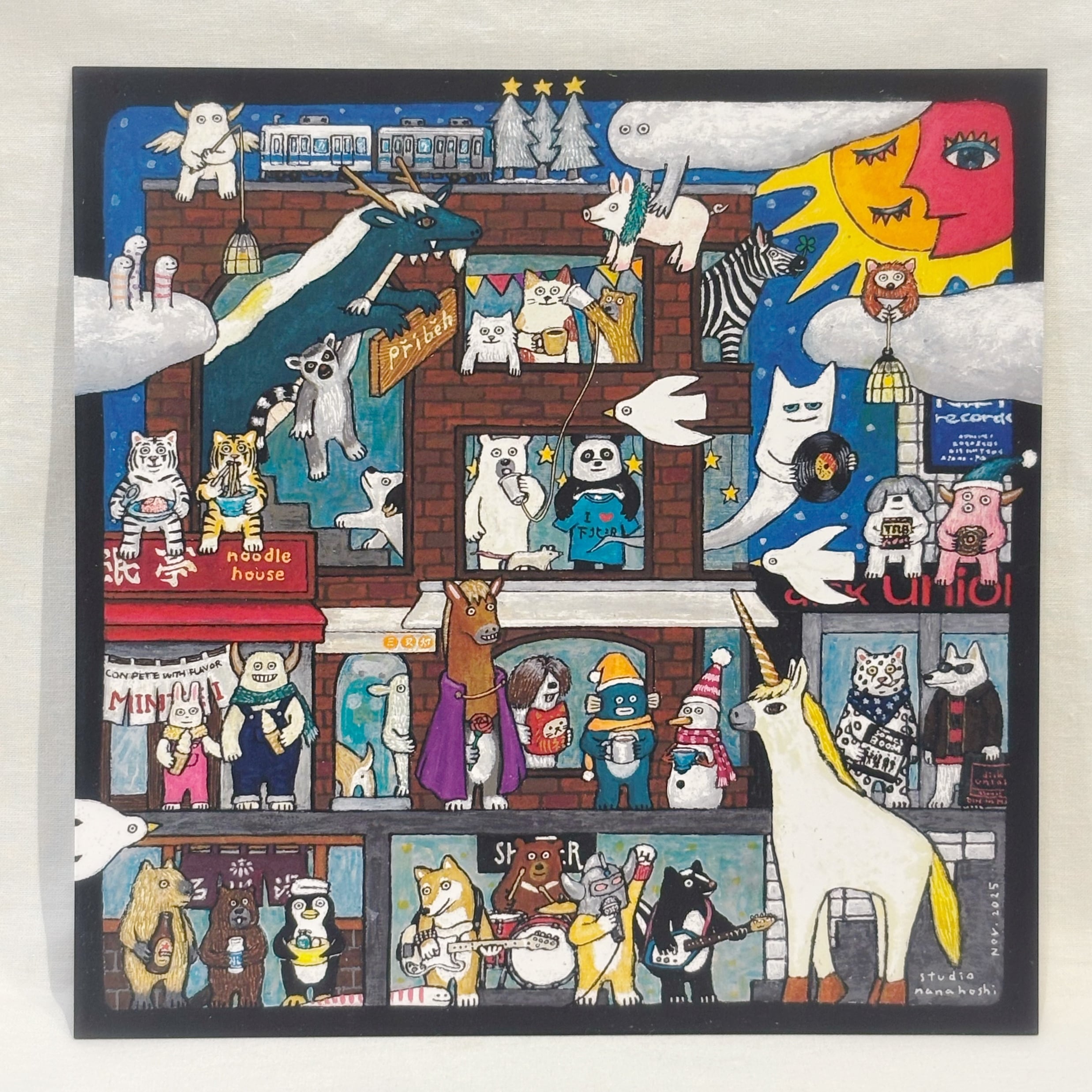 木製パネルに描かれたアクリル画をより身近にたのしんでもらえるよう大判カードになりました
