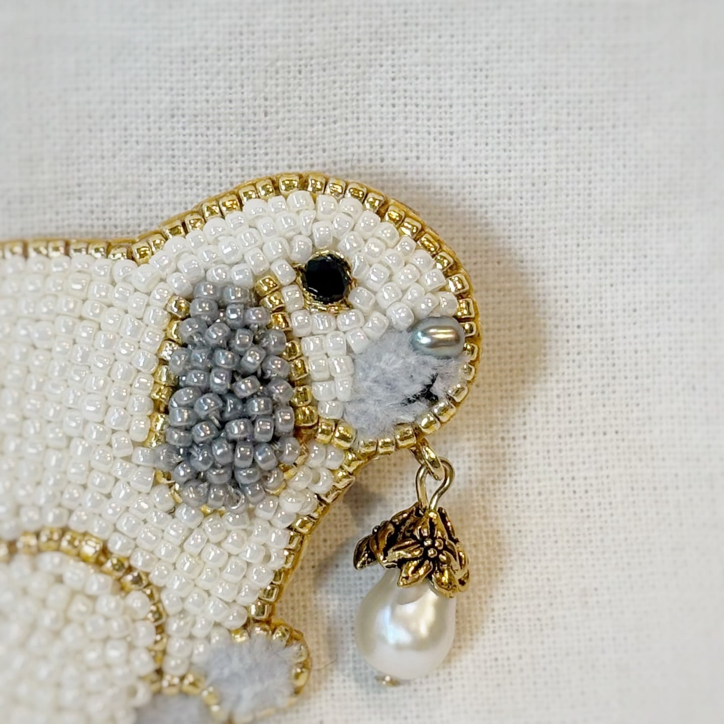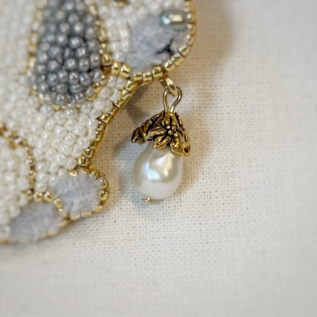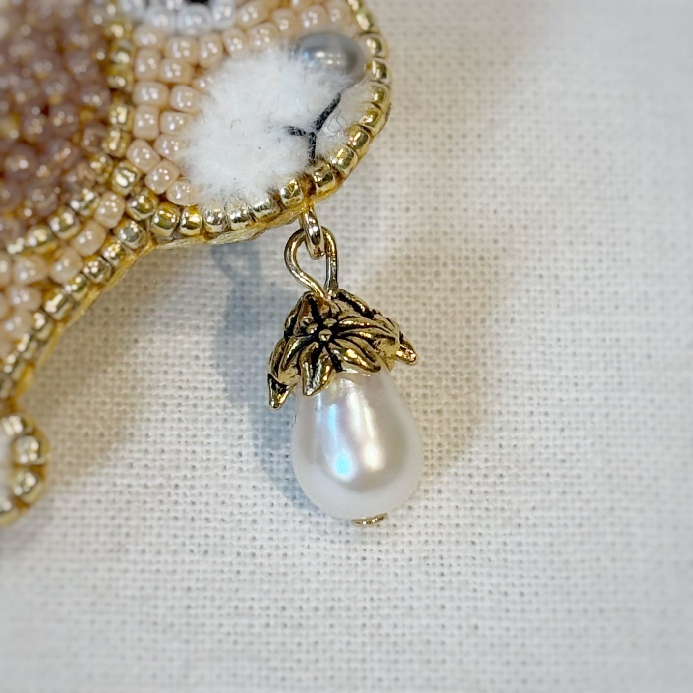 ちいさなビーズの並びが一つ一つ美しく、繊細なビーズ刺繍となっています