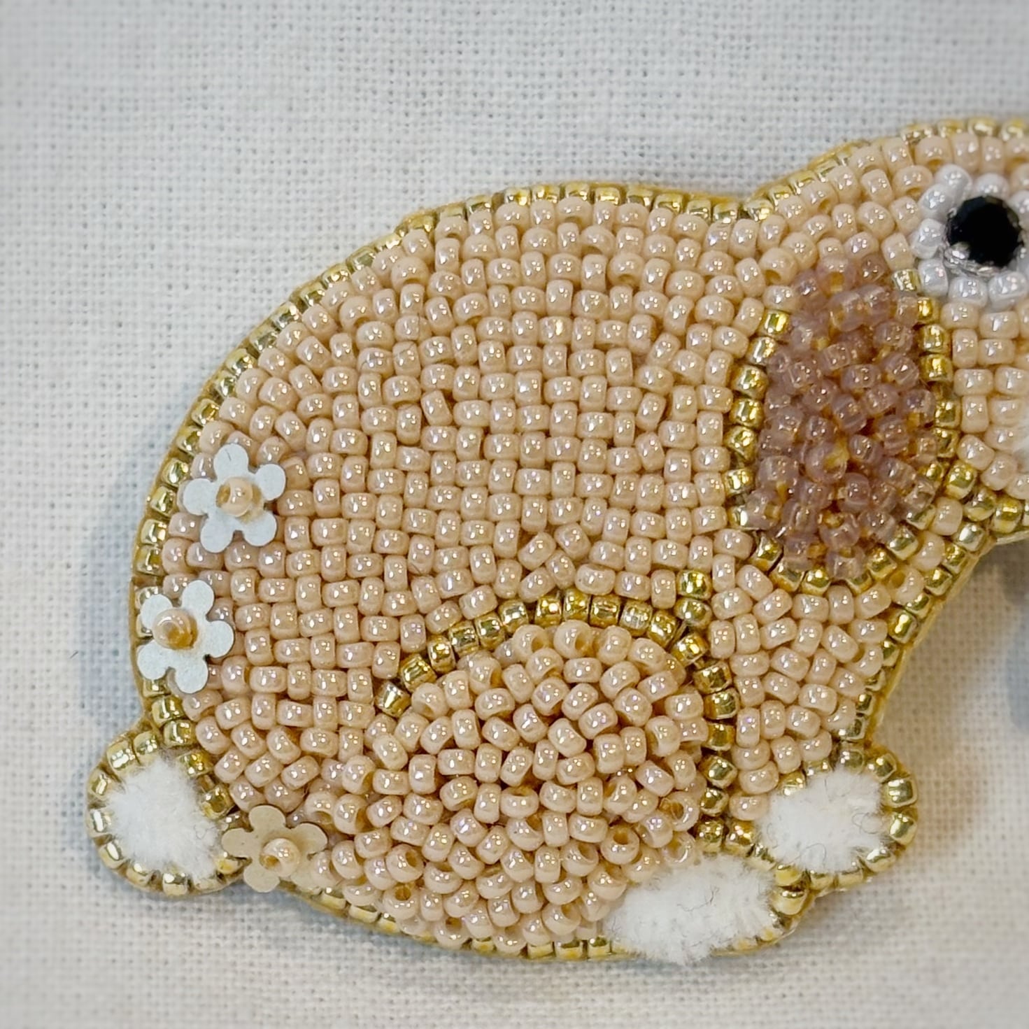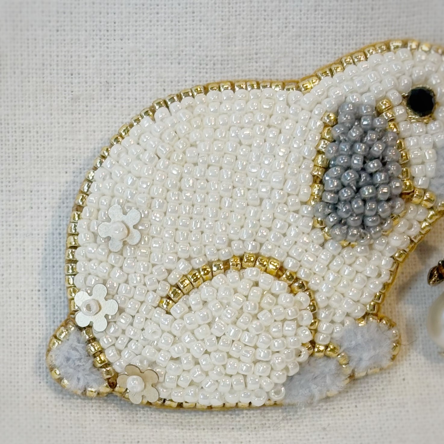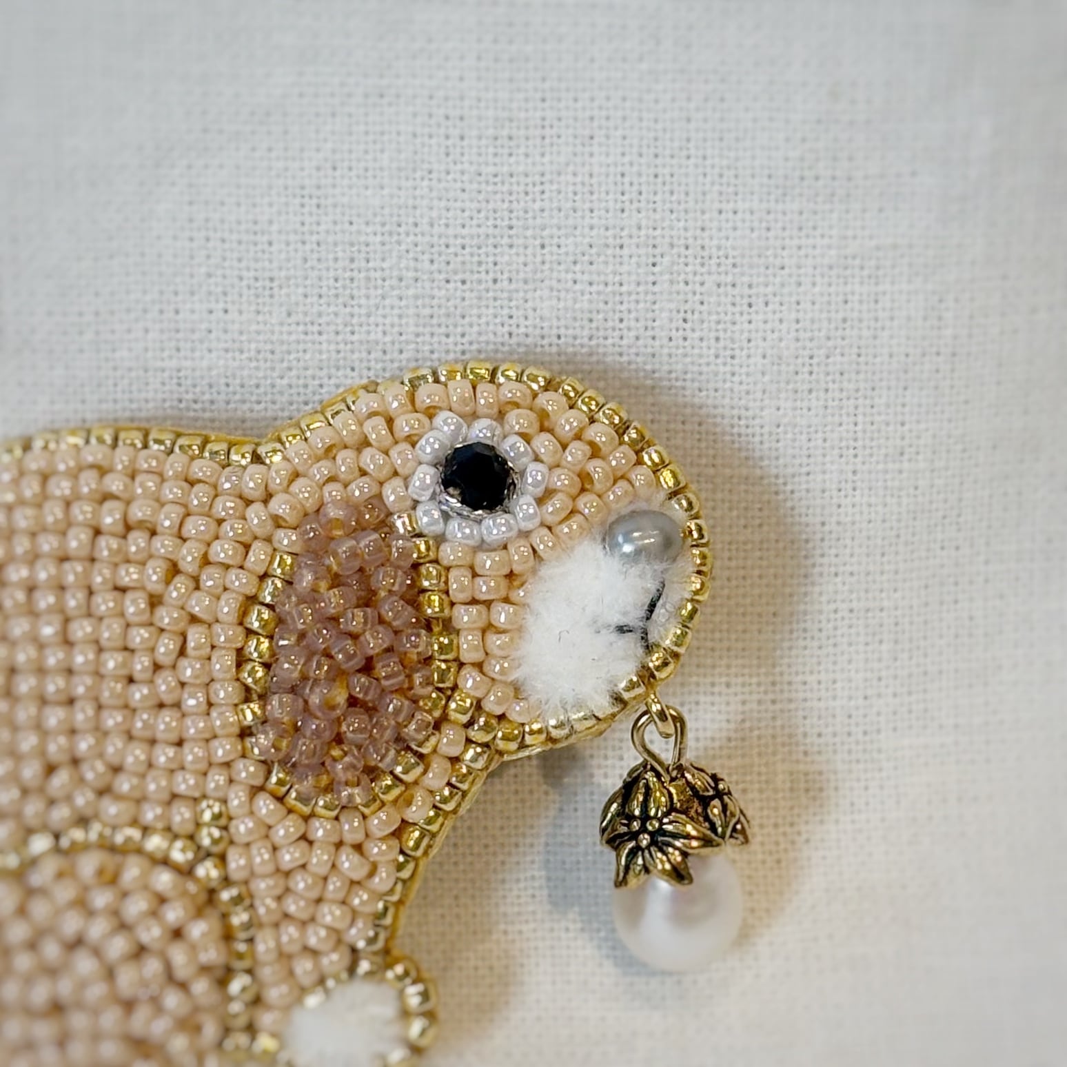 ちいさなビーズの並びが一つ一つ美しく、繊細なビーズ刺繍となっています