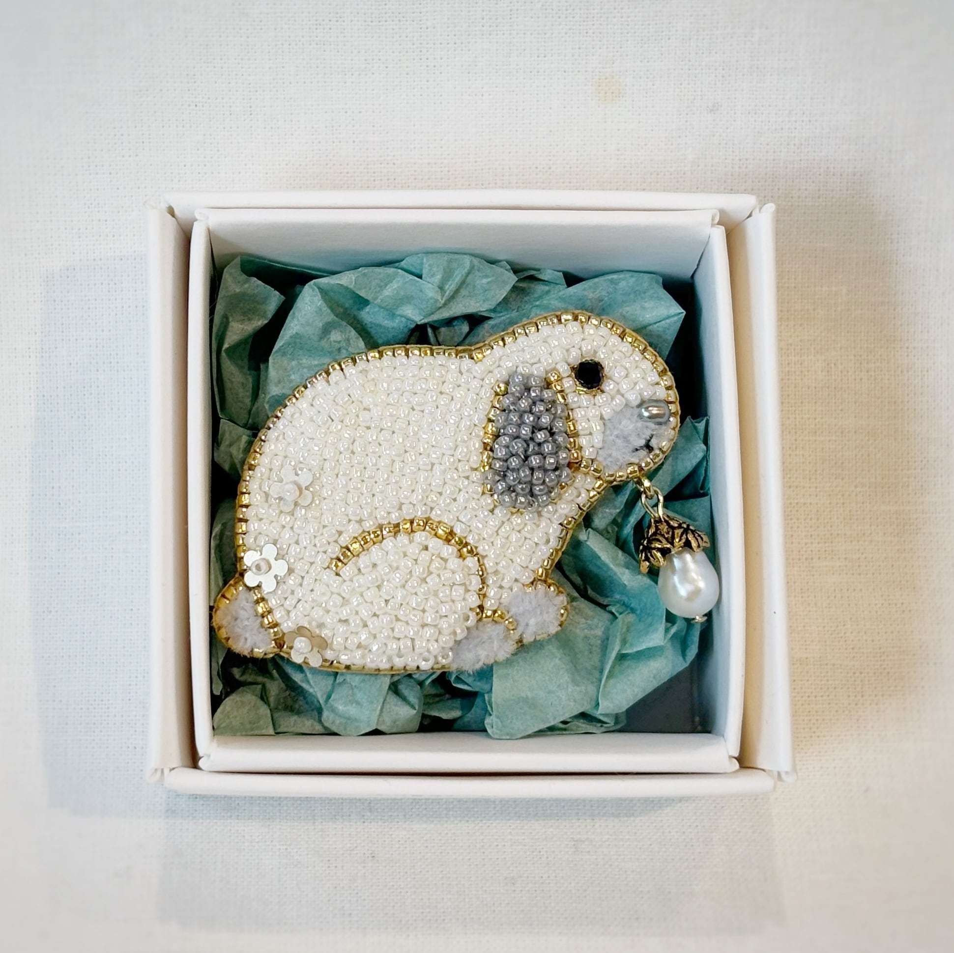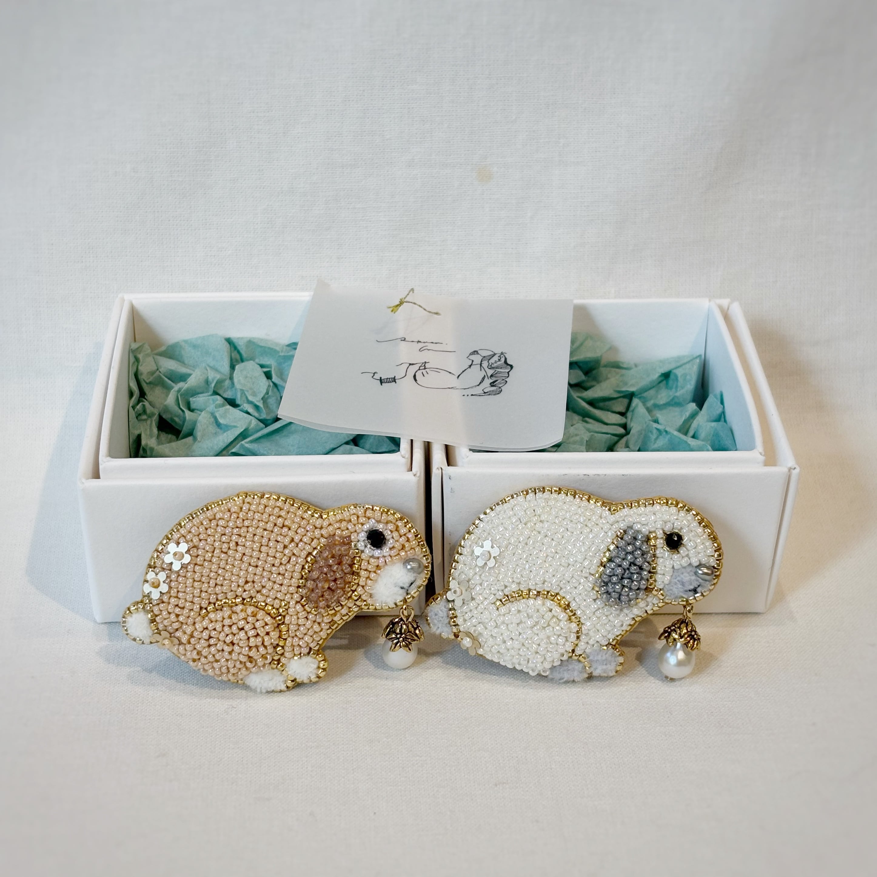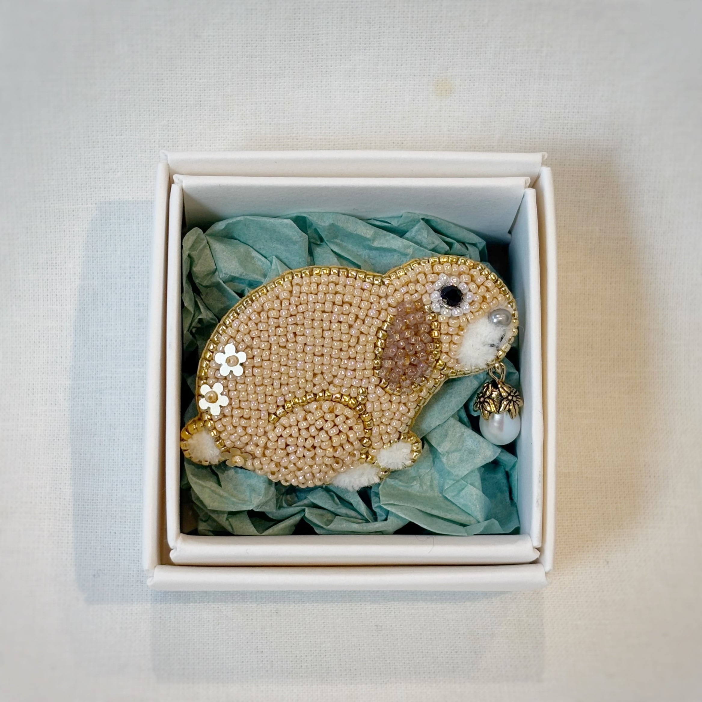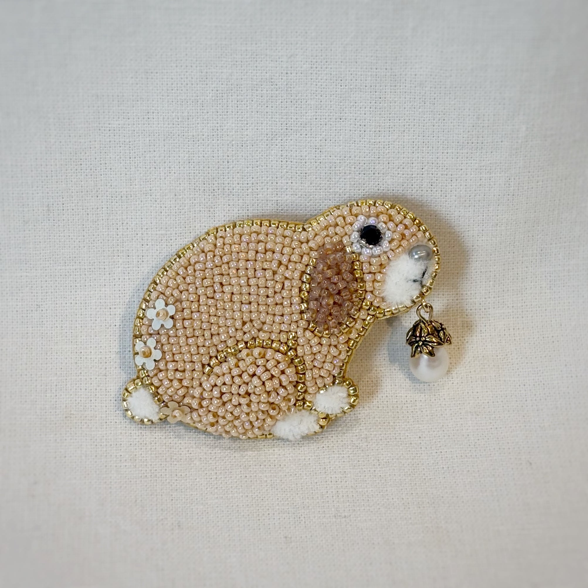 【sakura】タレミミうさぎと木の実(全2色)【ビーズ刺繍ブローチ】
