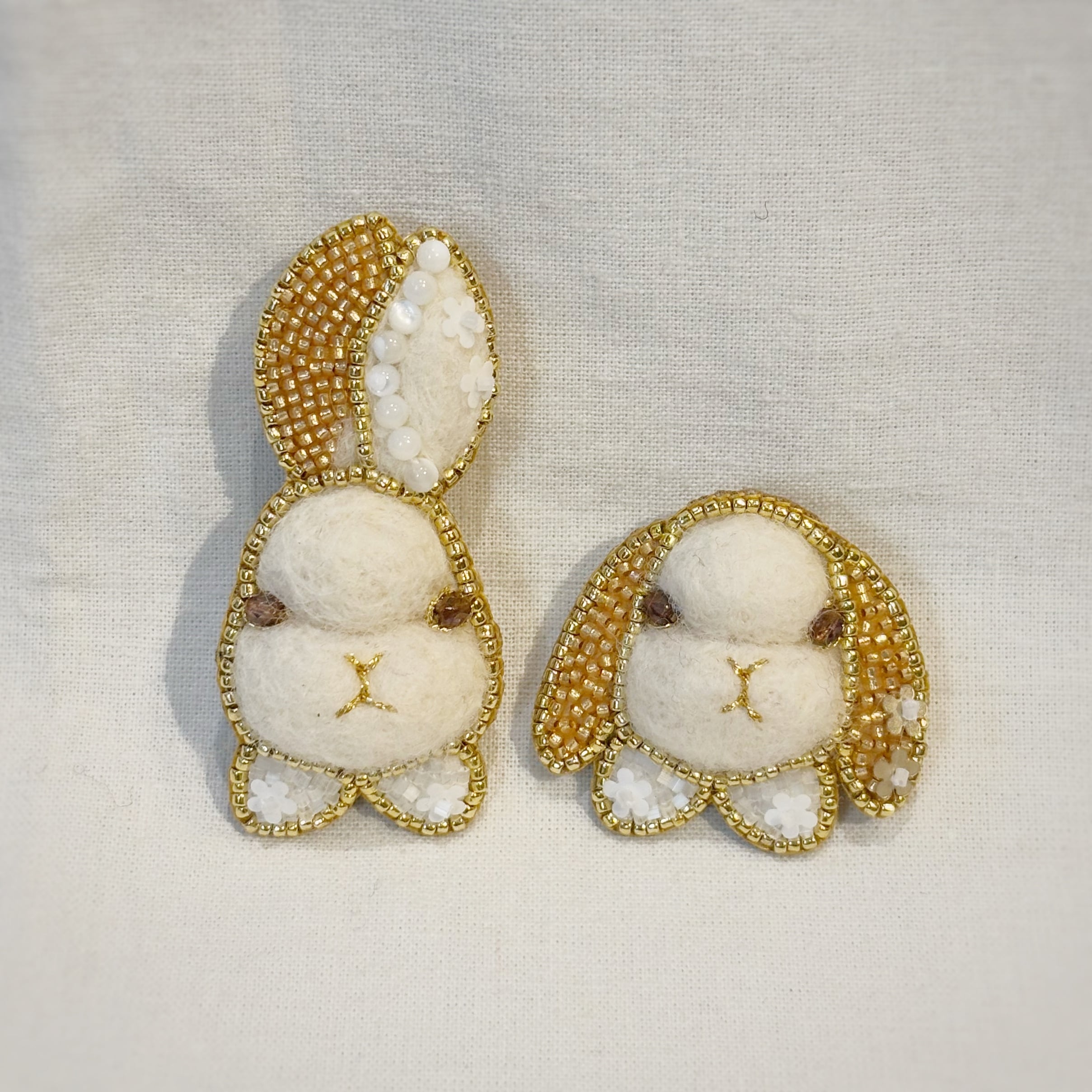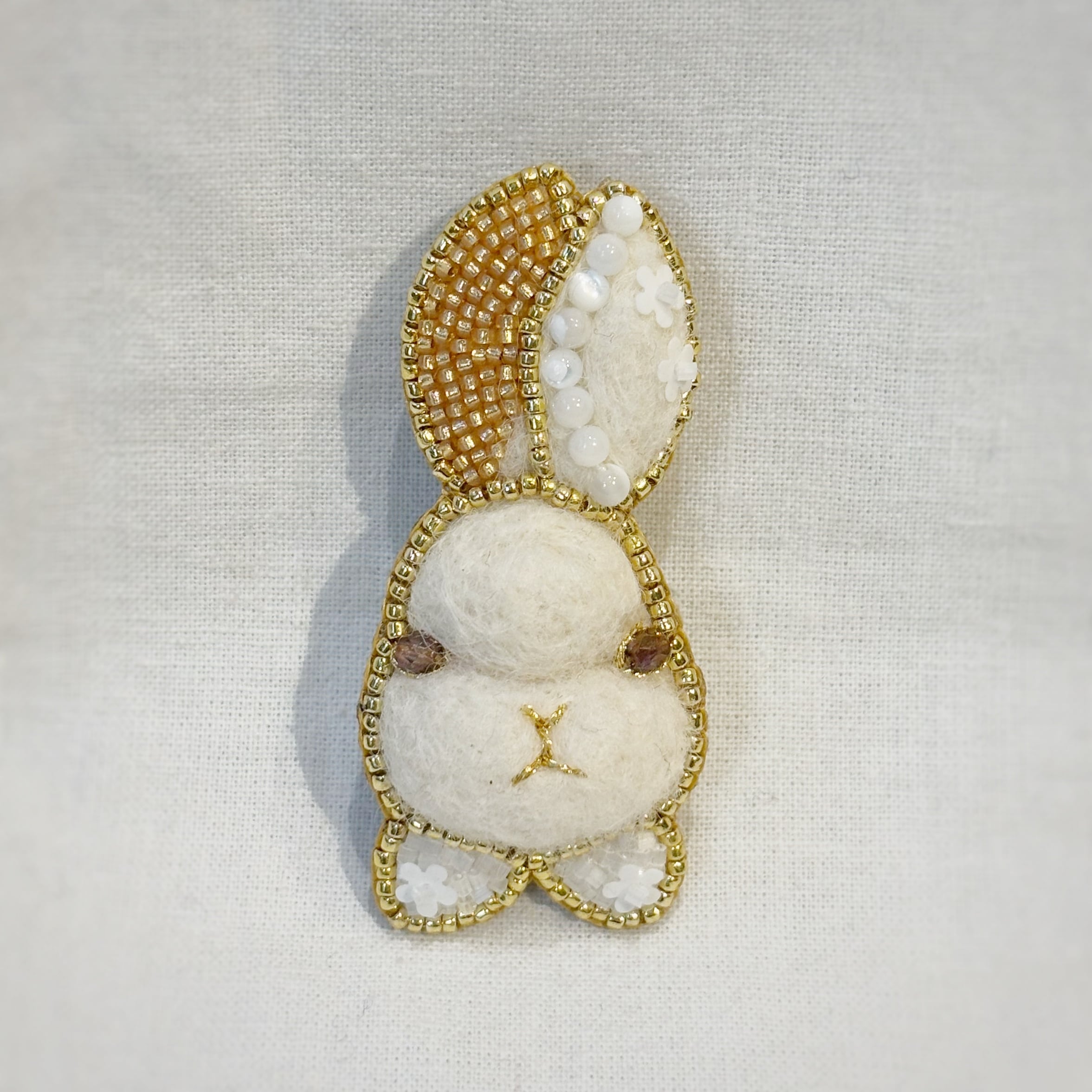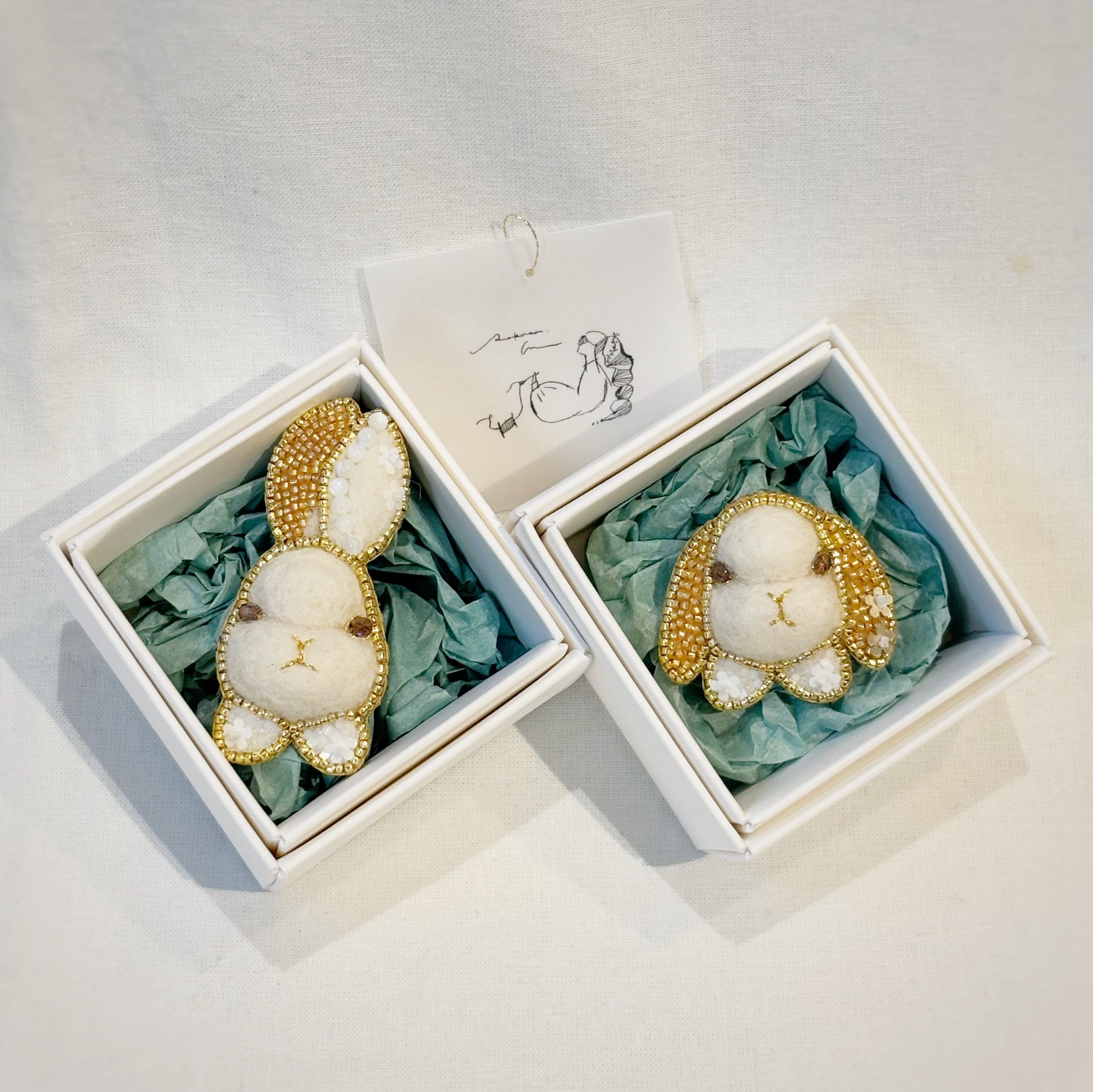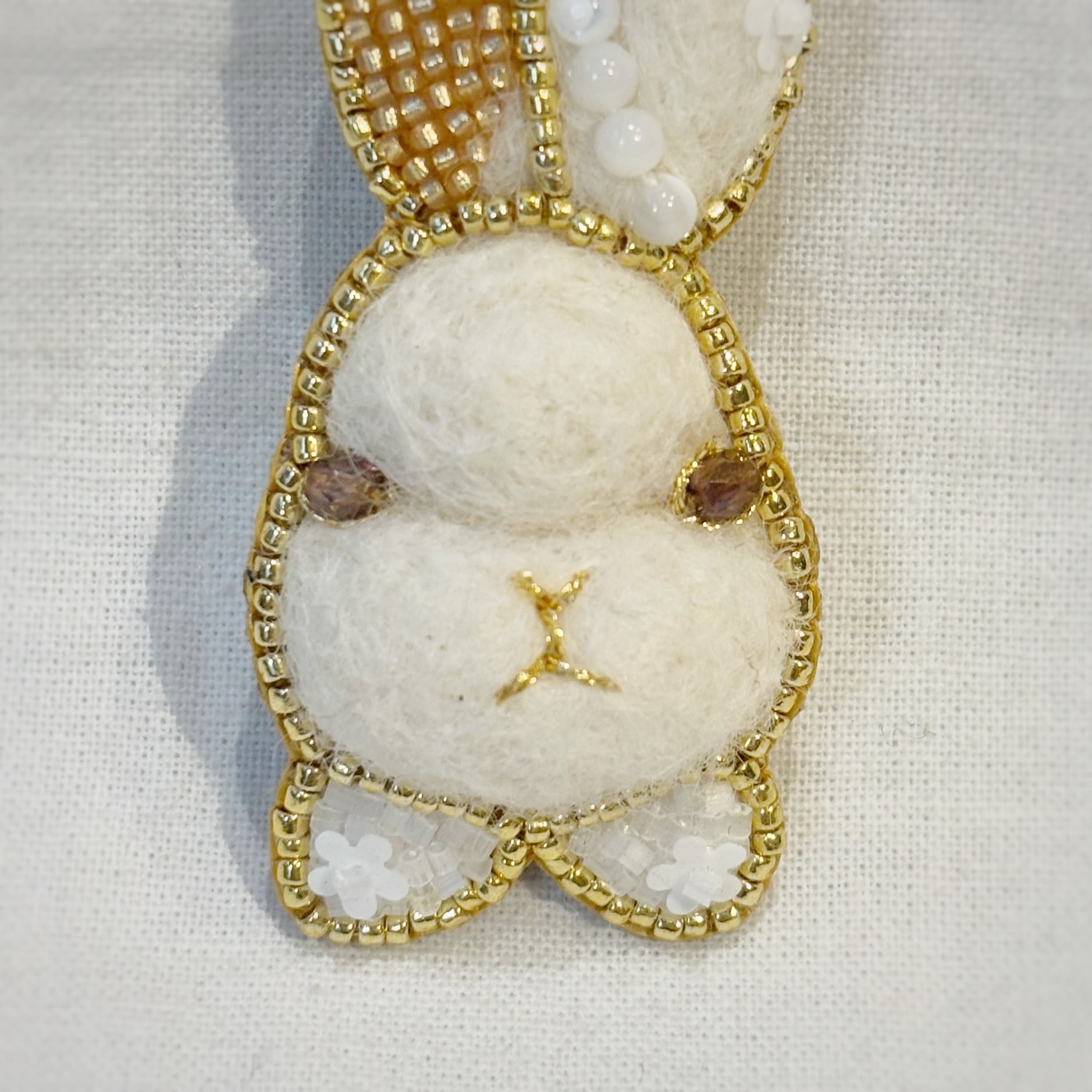 【sakura】パーティうさぎ(2種)【ビーズ刺繍ブローチ】