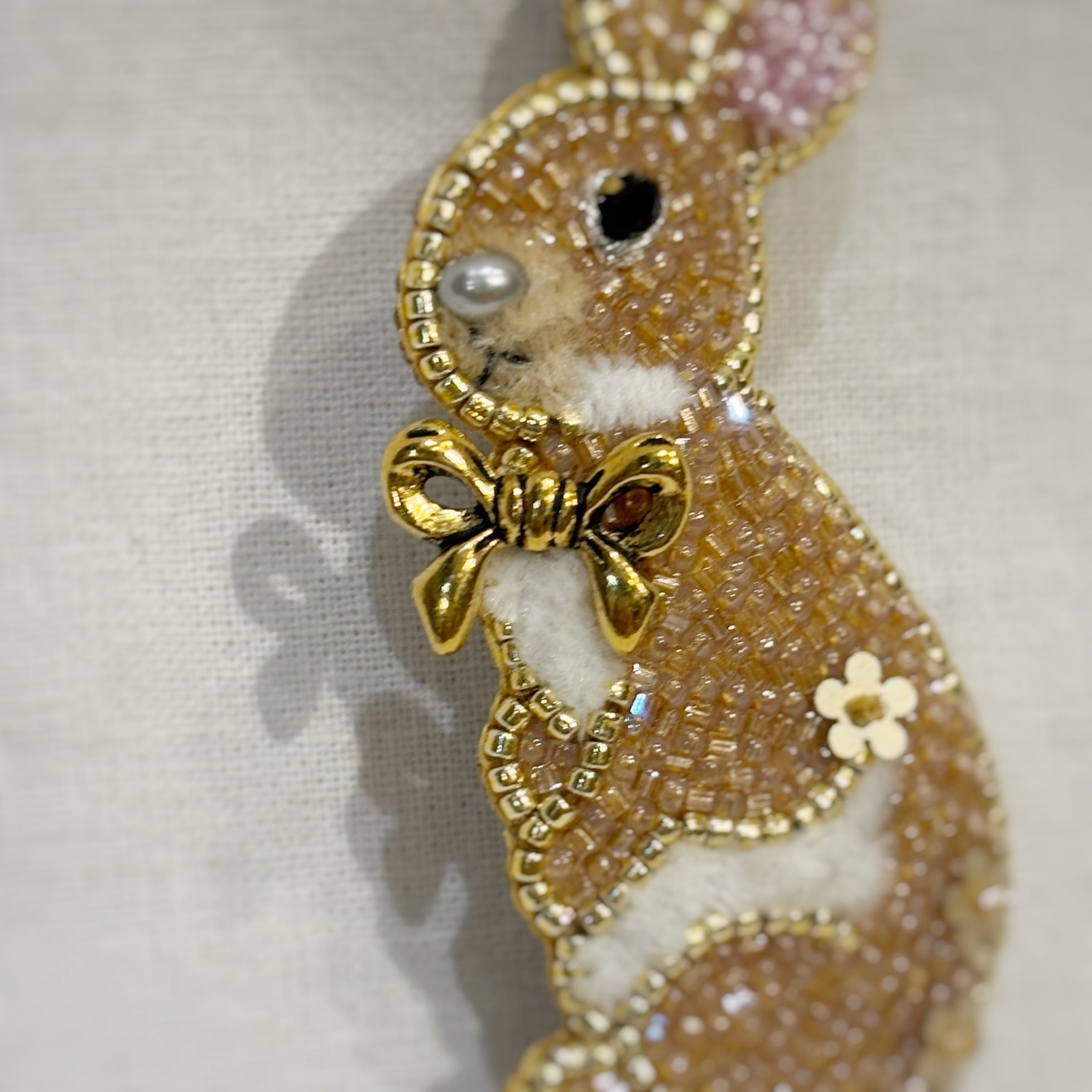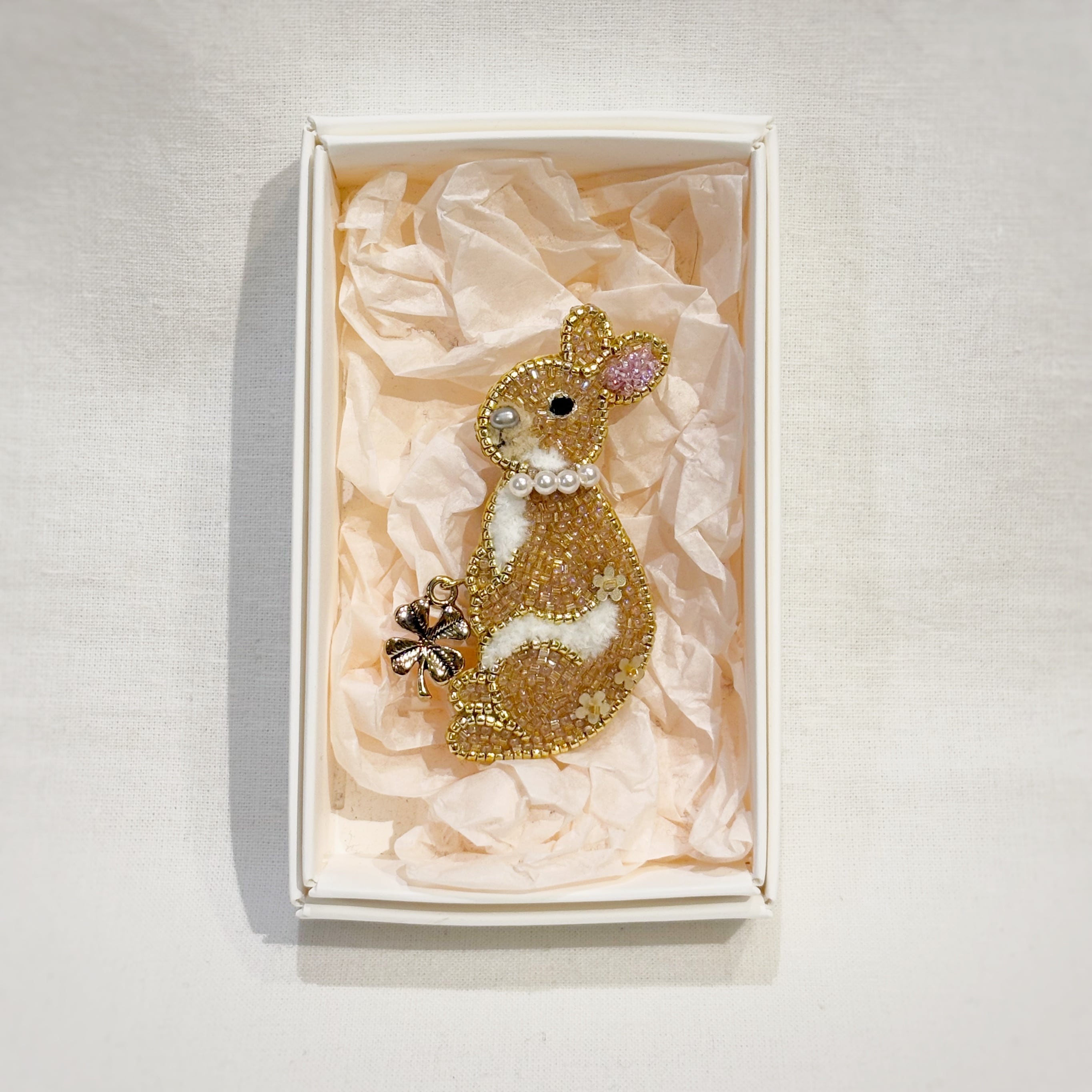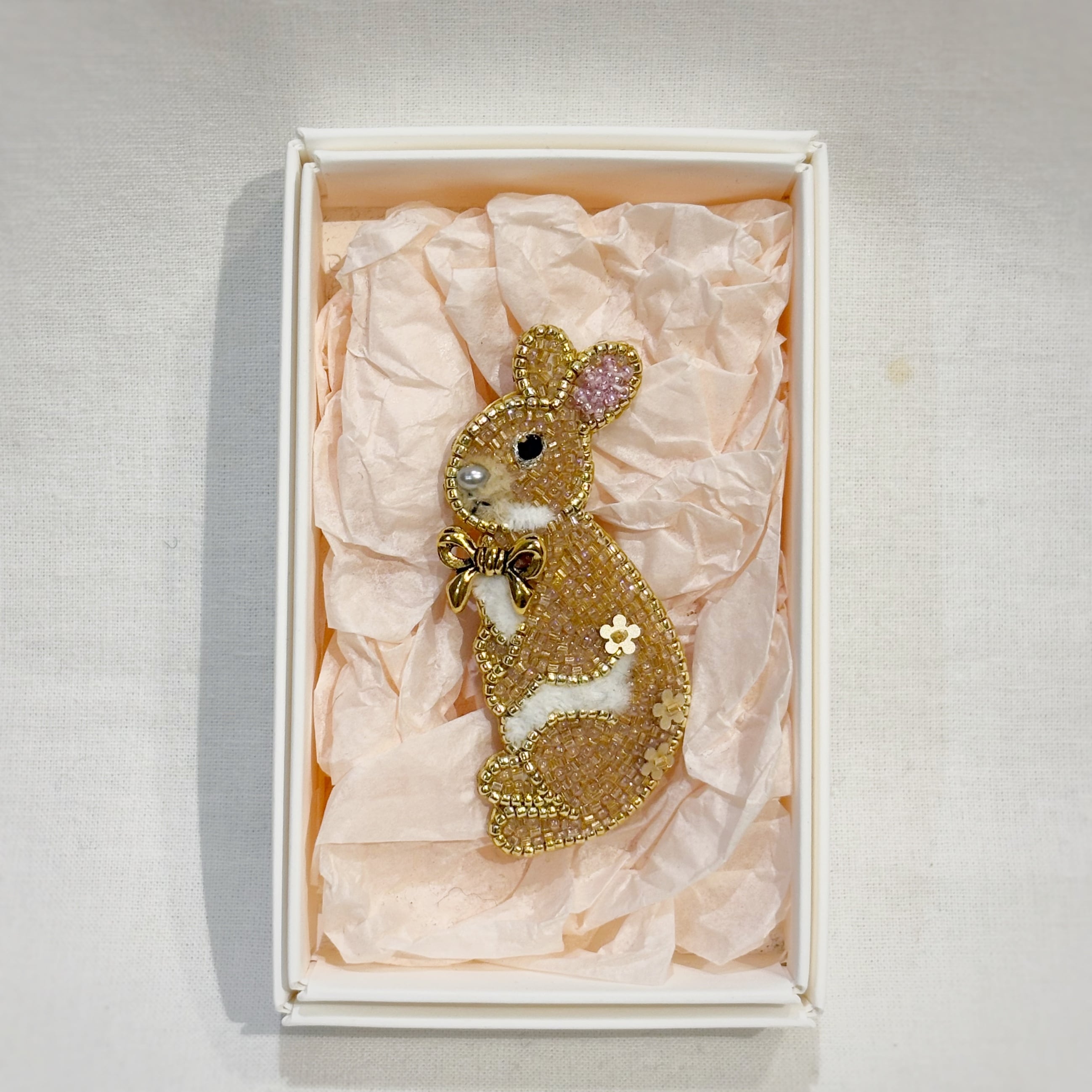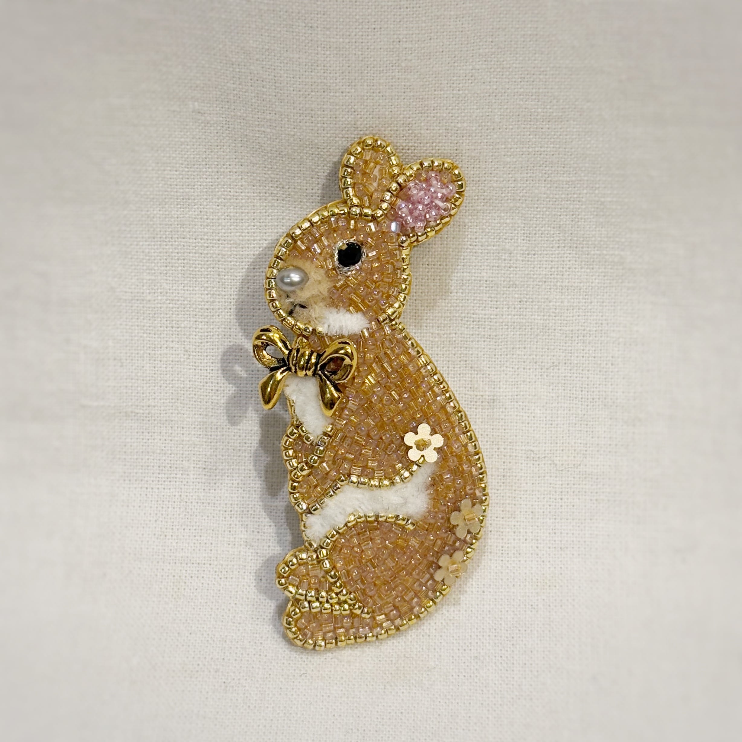 うさぎの愛らしい仕草の一つとしてうさぎずきの方に親しまれているその様子をビーズ刺繍ブローチに仕上げました