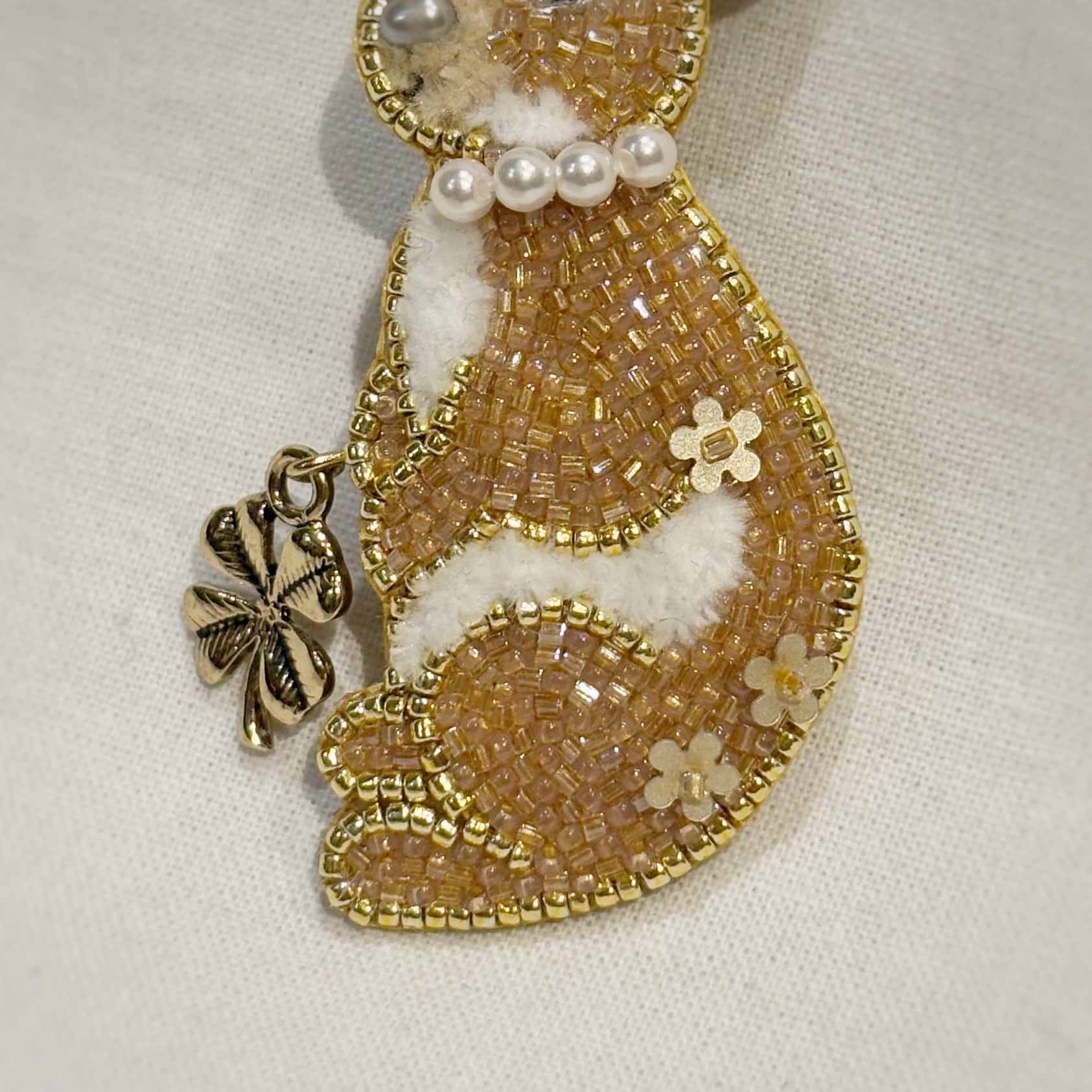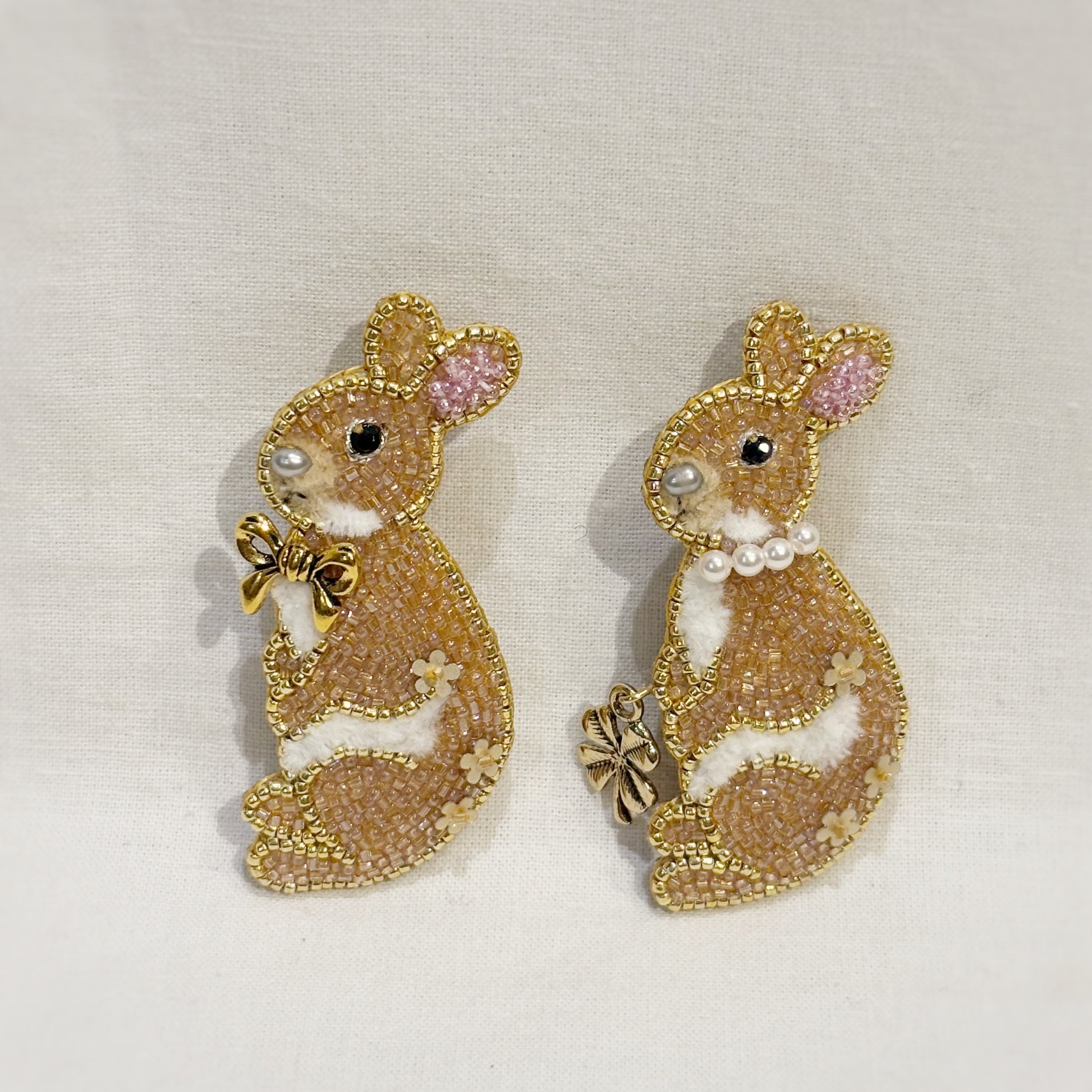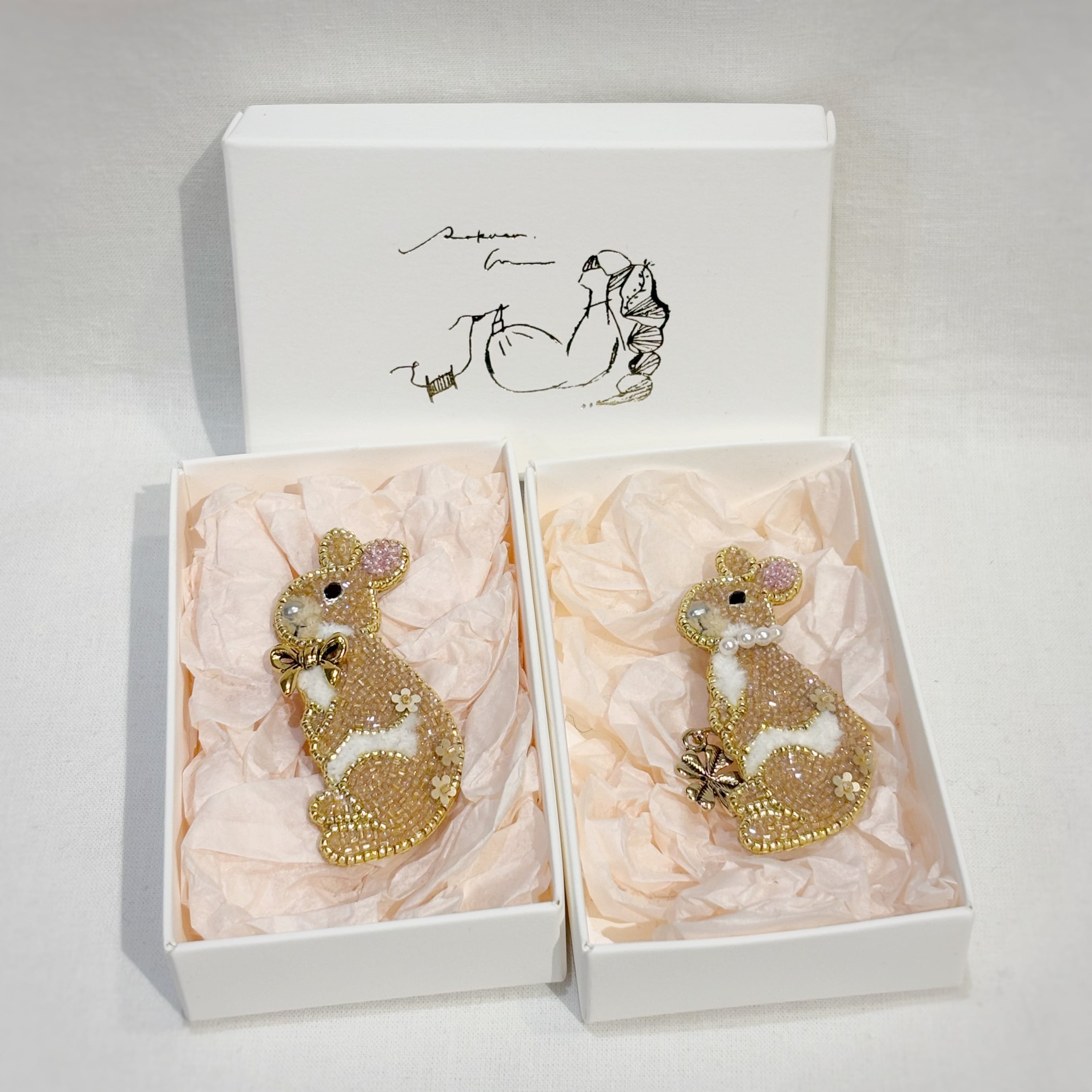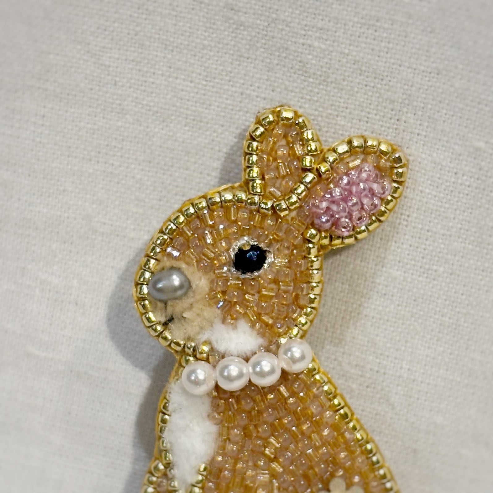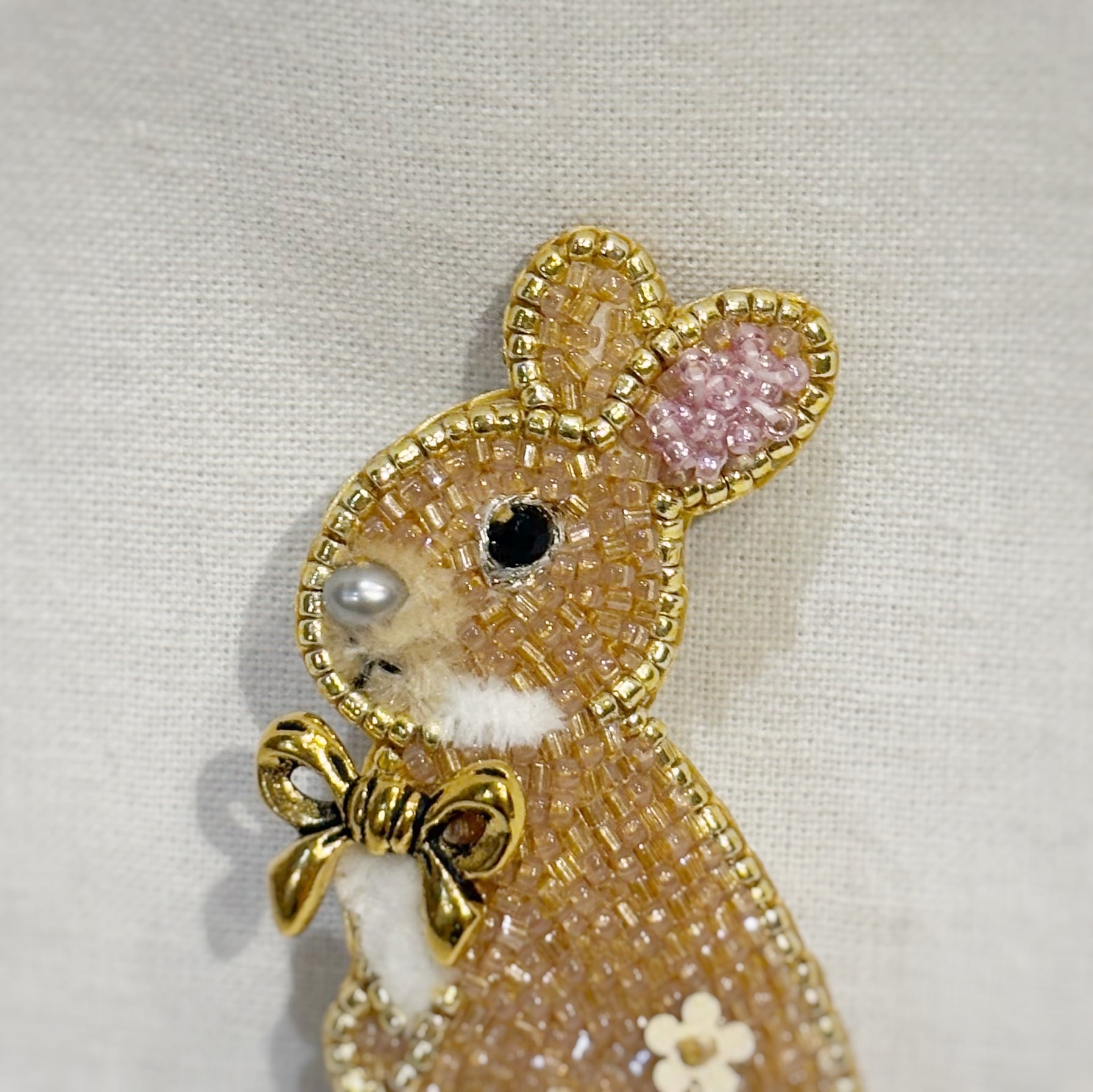 うさぎの愛らしい仕草の一つとしてうさぎずきの方に親しまれているその様子をビーズ刺繍ブローチに仕上げました