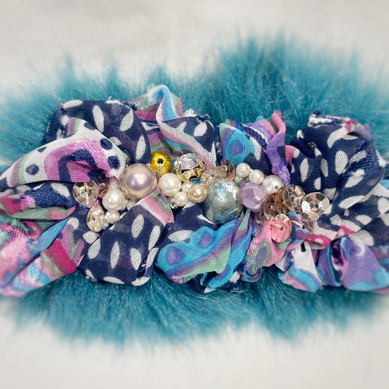 青緑を基調に、異素材や異デザインを組み合わせながらもきちんとまとまりを感じられる大人かっこいい仕上がりです。