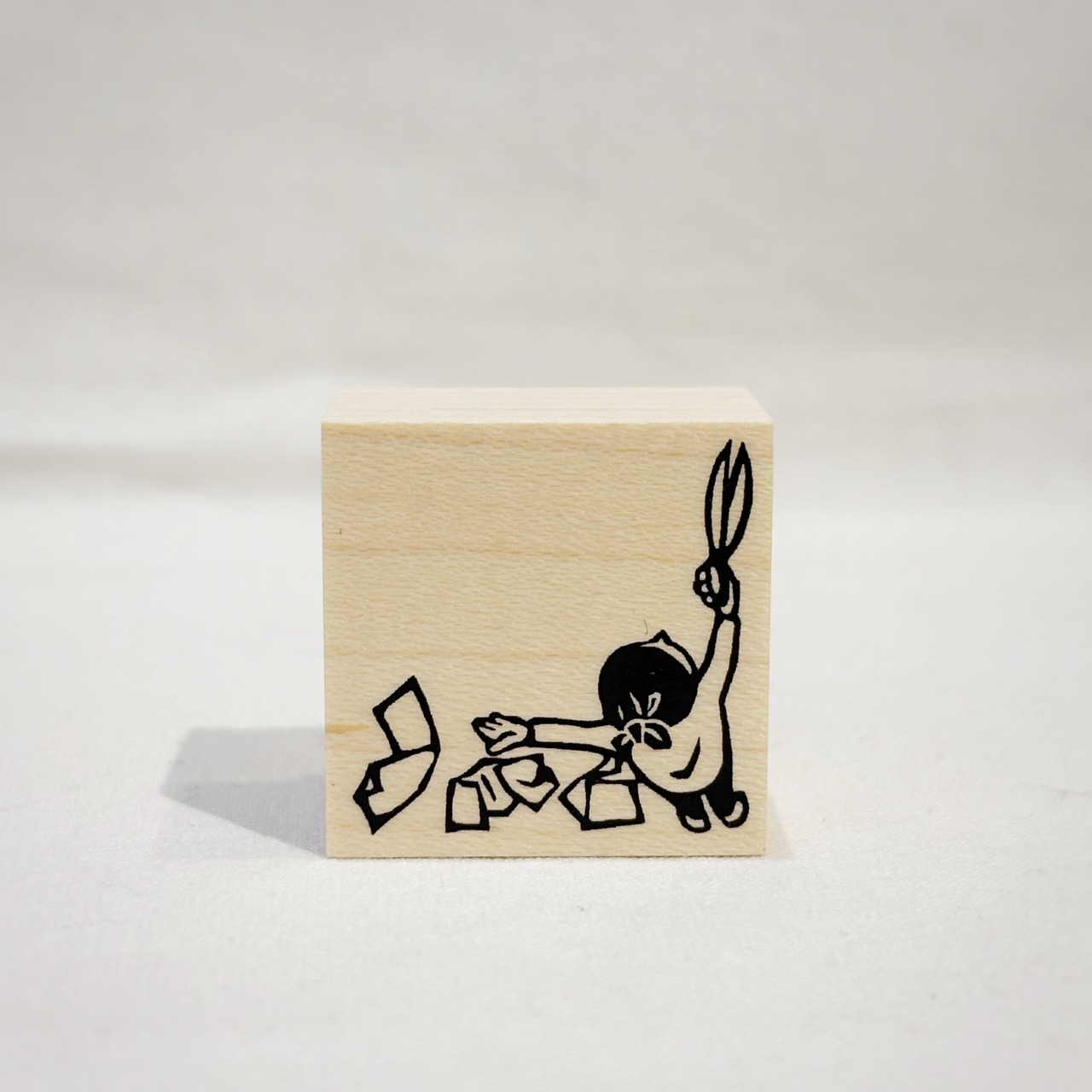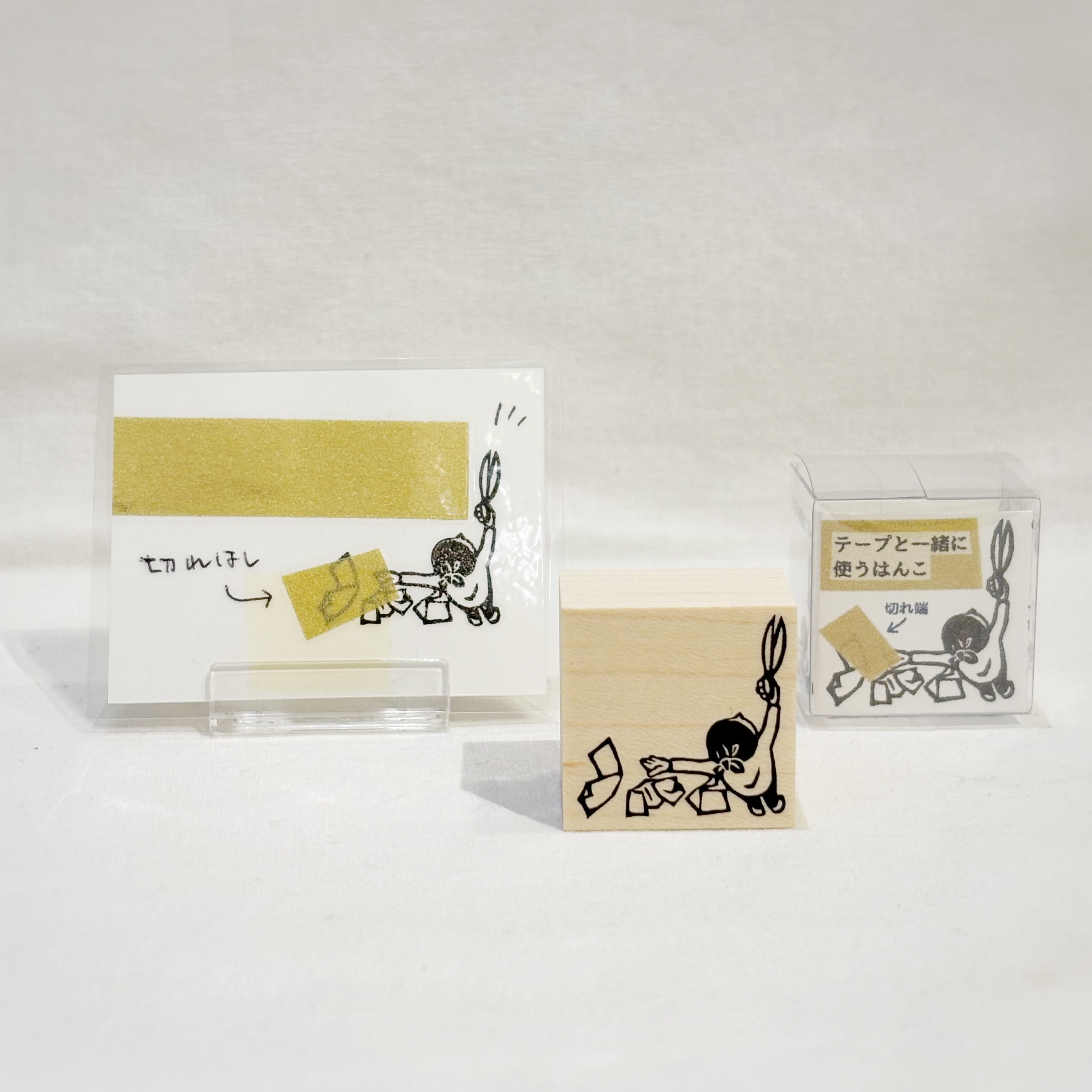 テープと一緒に使うはんこ「鋏で切る人」【ドウサ】