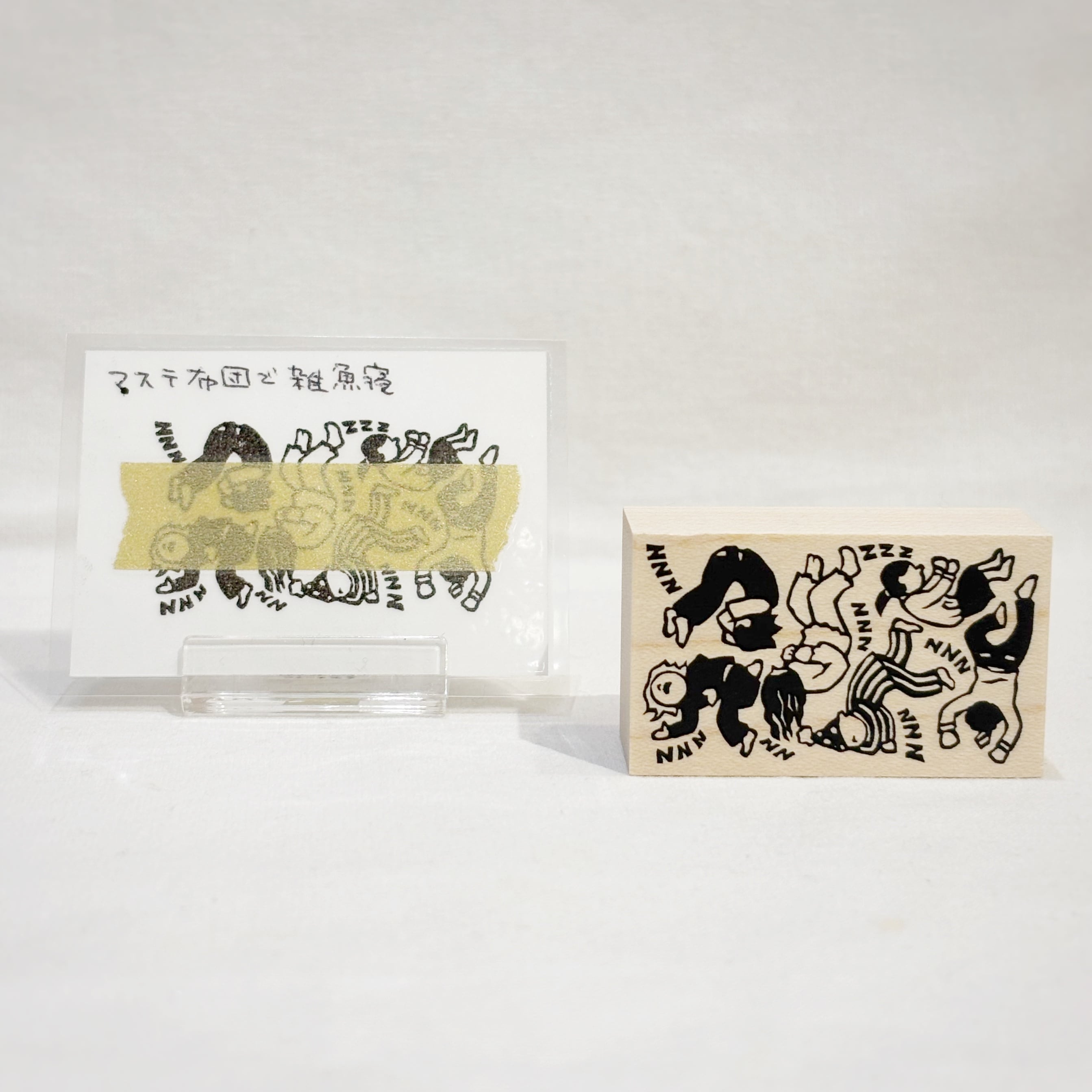 テープと一緒に使うはんこ「雑魚寝」【ドウサ】