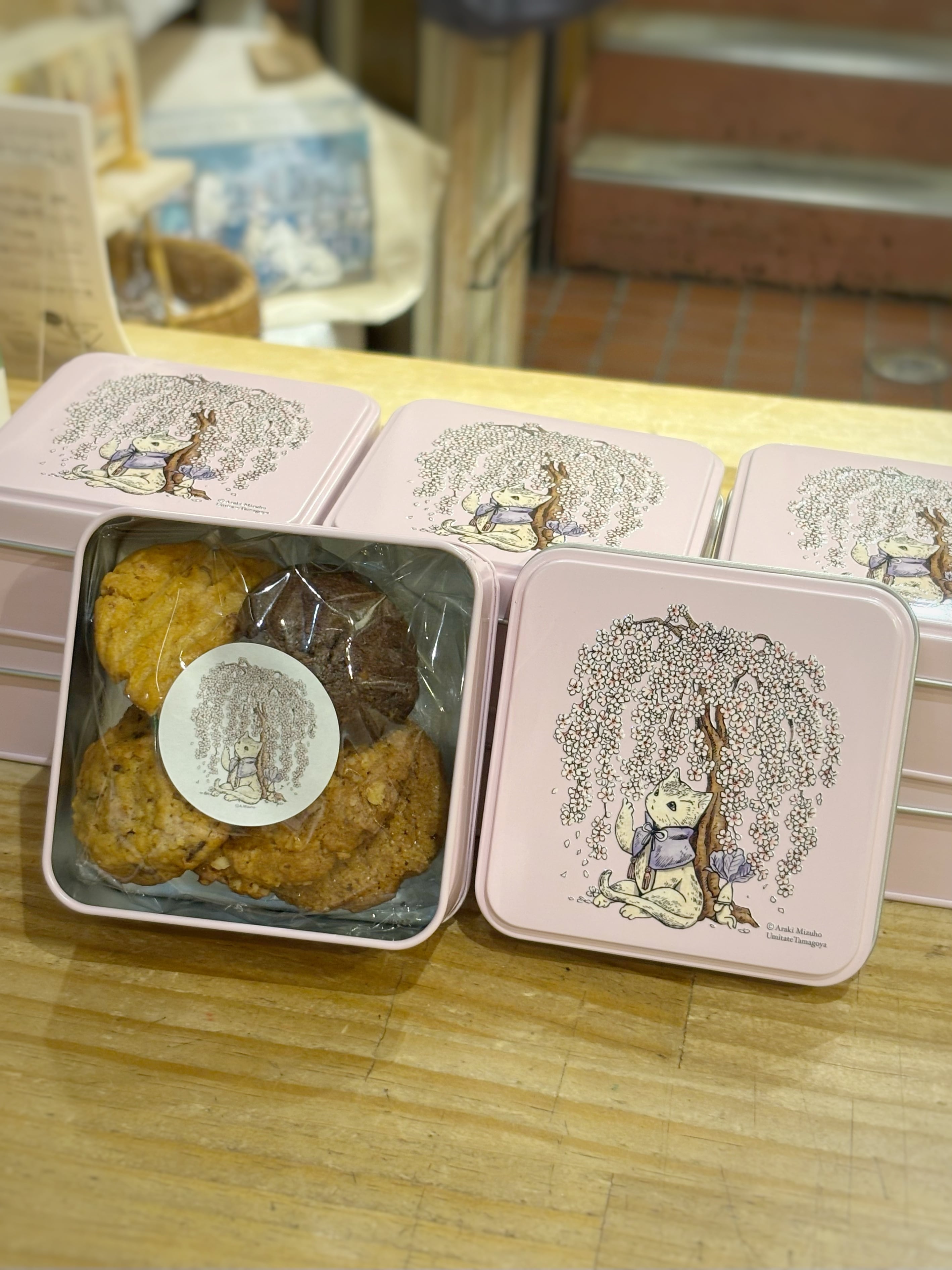 医療系雑貨生みたて卵屋さんが個展に描き下ろしたイラストを使用したクッキー缶が登場、中には三叉灯にていつも販売しているBookends Coffee Serviceさんで仕入れているアソートクッキーを詰め込みました