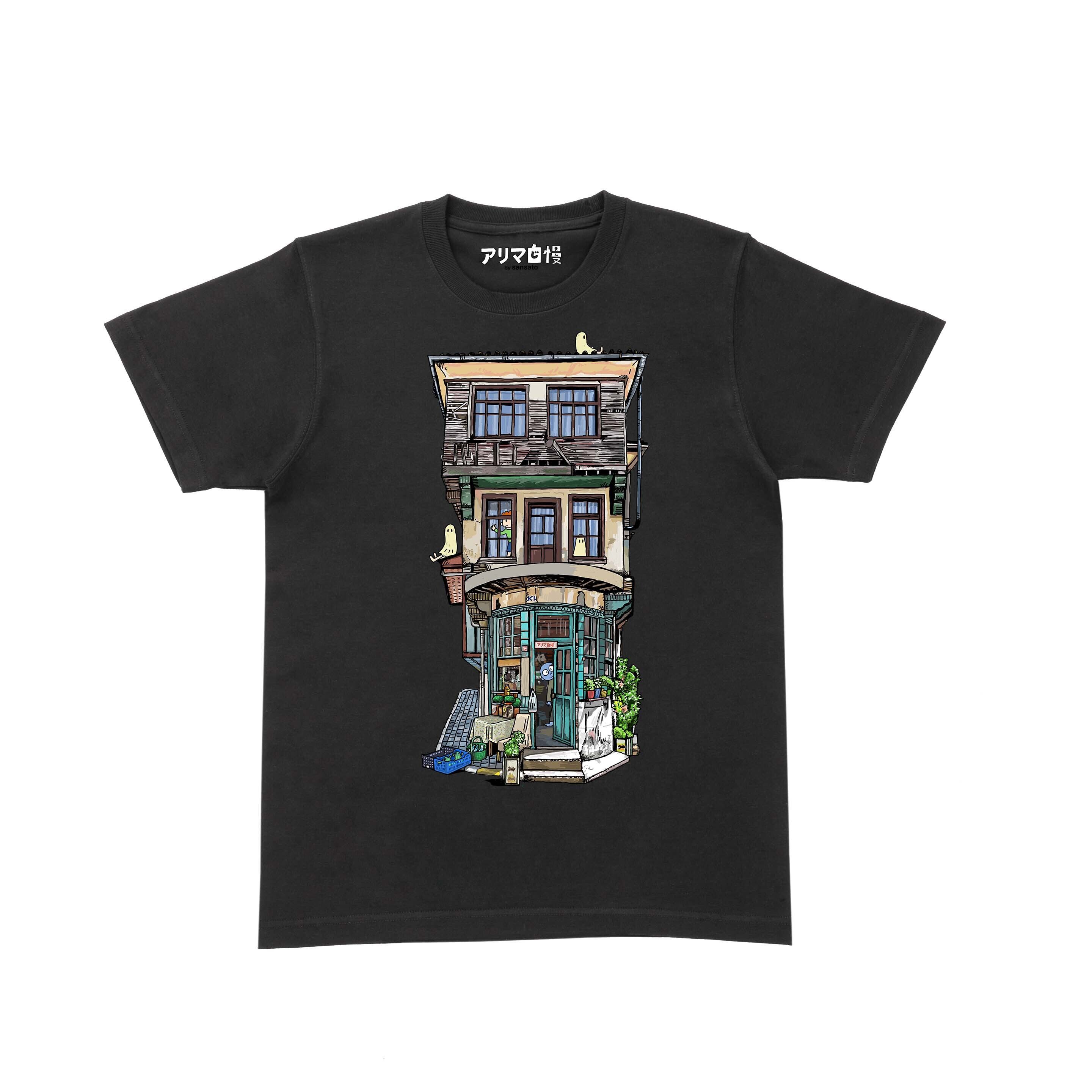海外の建築をモデルにした建物の入り口からひょっこり覗く”ゾンビくん”が可愛い!建物の入り口と緑を照らす陽射しが、さわやかな気分にさせてくれる一枚です。オバケやカエル、魚などを探してみてください♪