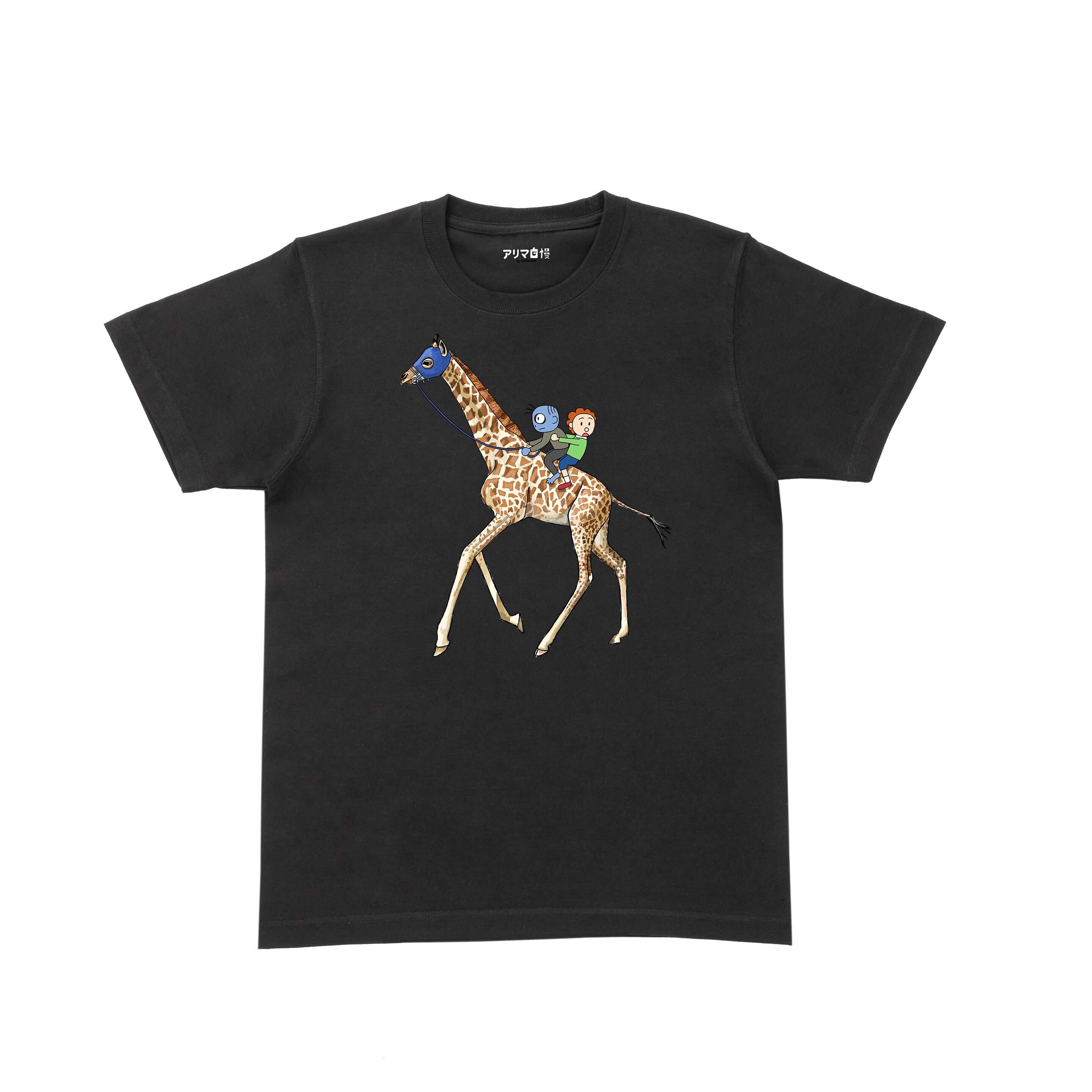 キリン好きの方お待たせいたしました!!競走馬ならぬ競争キリン?のTシャツの登場です。それにしてもアリマさんのリアルな動物×ゆるーいゾンビくんのコラボはシュールで良いですね。キリン派のご友人にもおすすめしてください^^