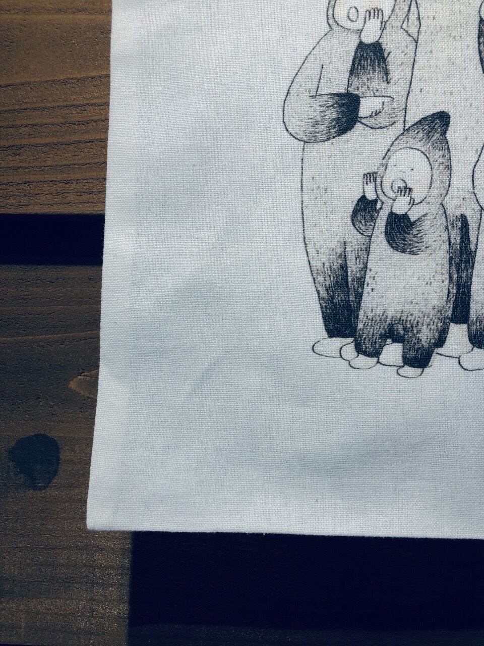 みうらともさん2024年カレンダー『寄り道』のイラストを三叉灯の工房でASHA作製のトートバッグに印刷しました。