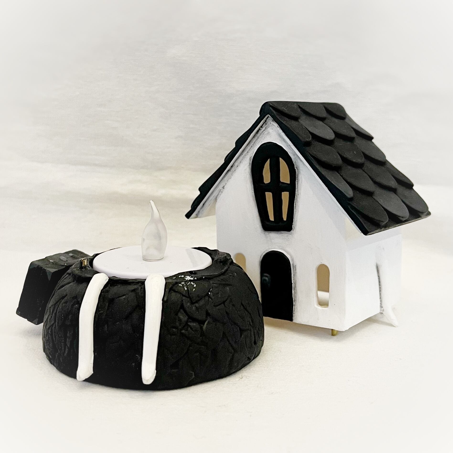 ちょこんと座った姿も、あかりを灯した姿もすてきです。