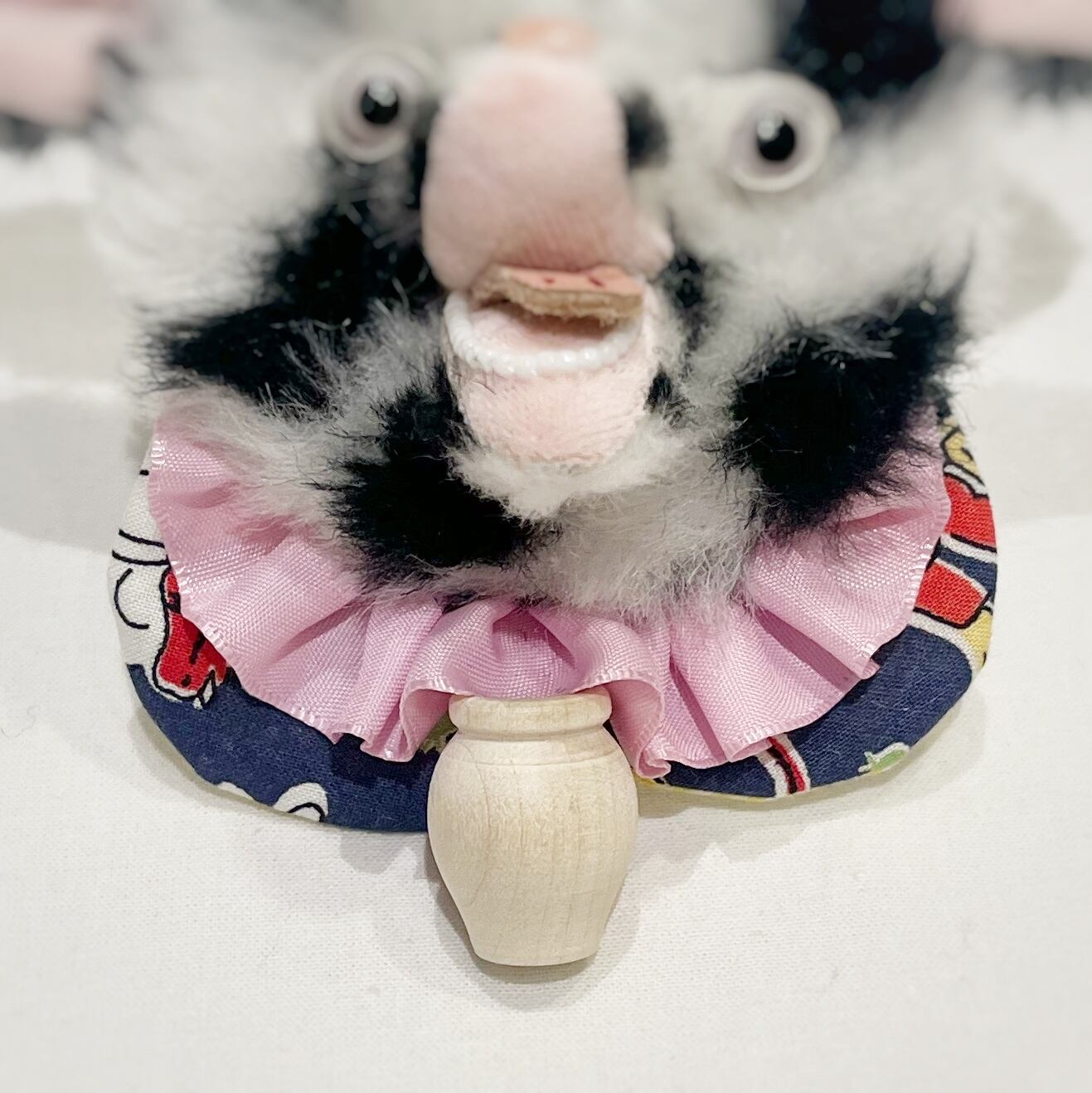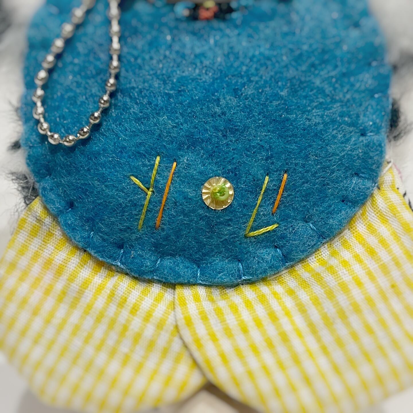 yolさんのブローチにはピンのほかにボールチェーンも付いていて、お洋服やカバンにお好きなように付けられます。